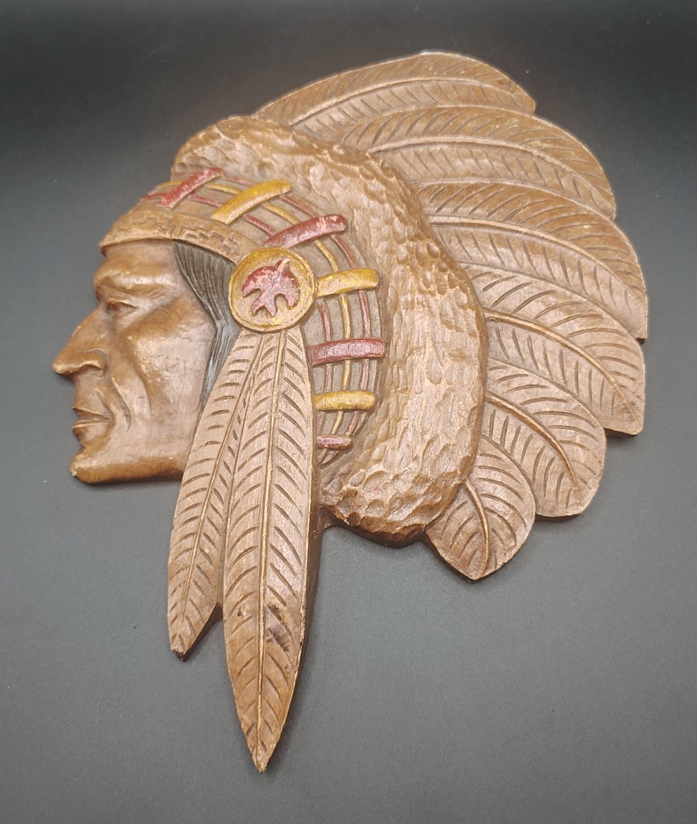 This is a classic piece of mid-century 'Americana' wall decor, designed to mimic the appearance of a hand-carved wooden relief.