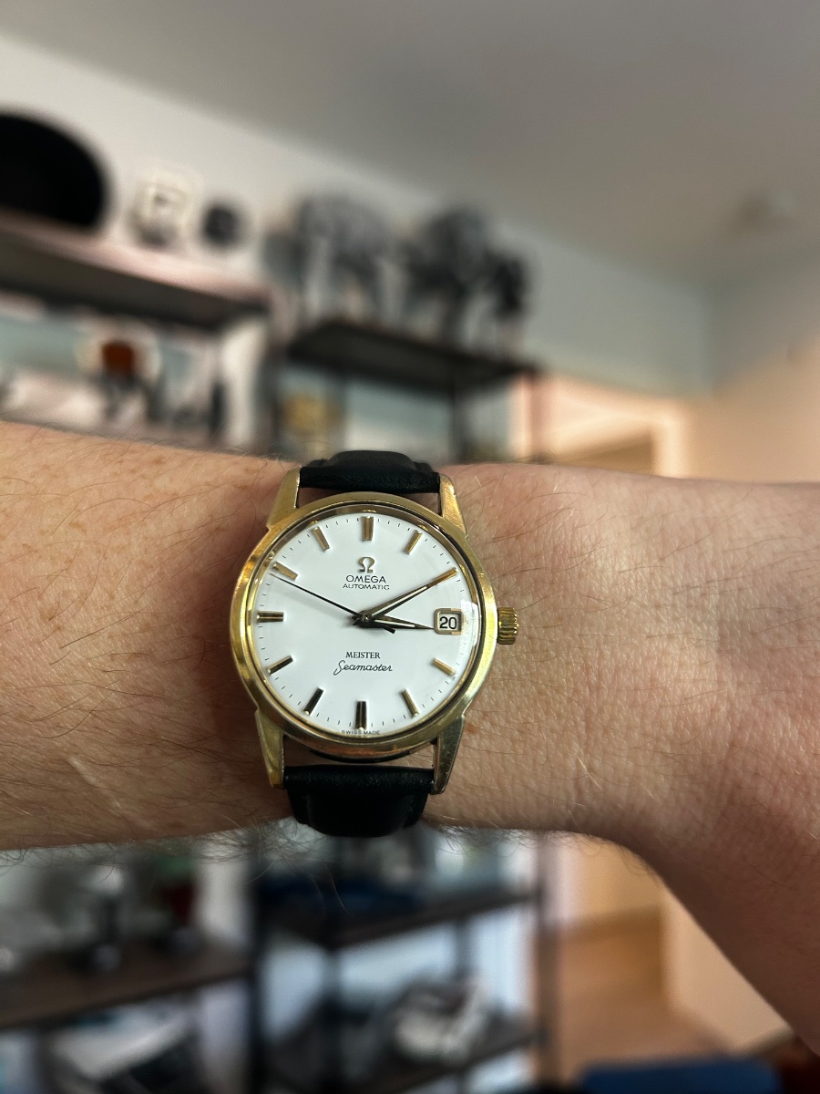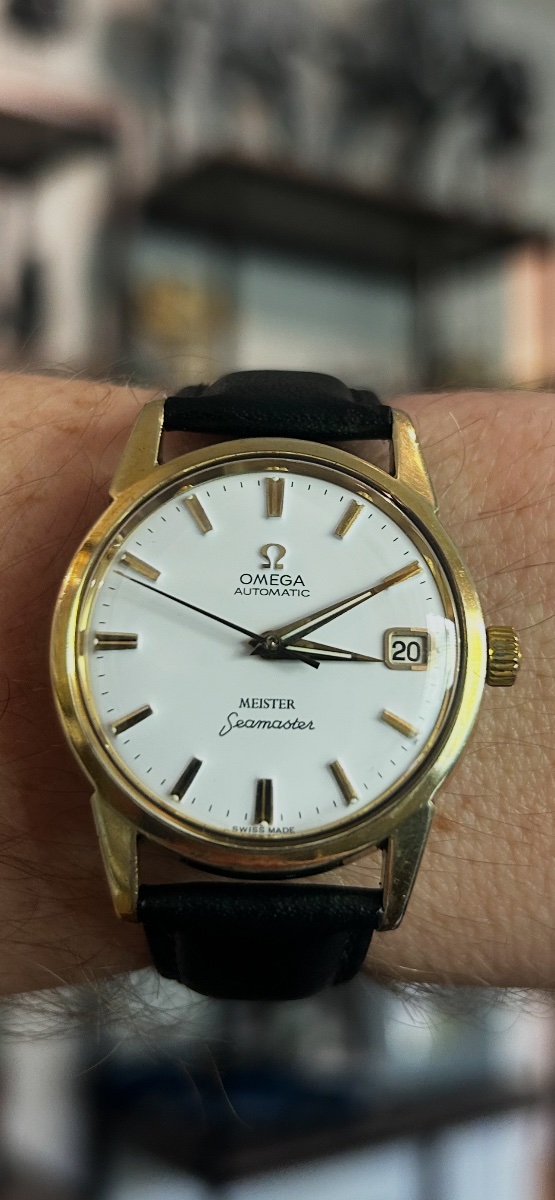 This is a rare 'double-signed' Omega Seamaster, featuring the name of the prestigious Zurich retailer 'Meister' on the dial.
