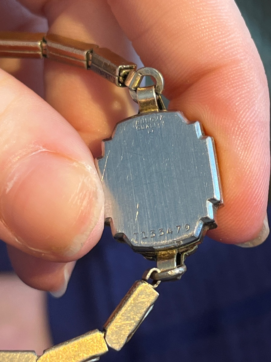 A quintessential example of mid-century feminine elegance, featuring a geometric 'stepped' case design inspired by the architectural marvels of the era.