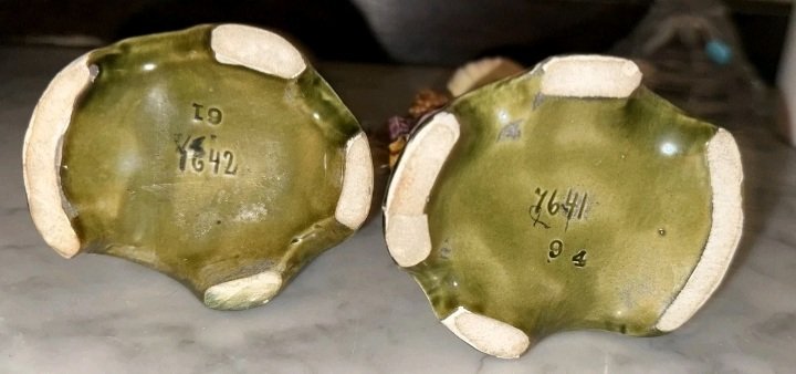 While no specific factory mark is visible, the impressed four-digit model numbers and the specific 'moss green' and 'dusty rose' palette are highly characteristic of the Bernhard Bloch or Gerbing &…