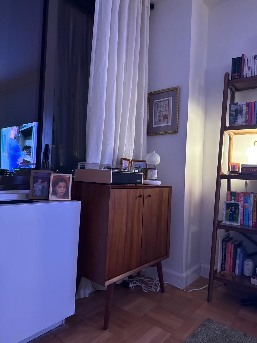 The cabinet appears to be in excellent condition with a consistent finish and no visible water rings or veneer chipping on the top surface. Based on the secondary market for high-quality modern revivals.