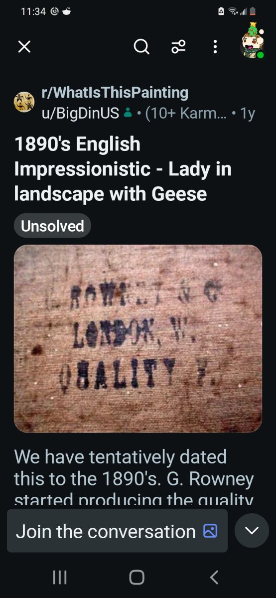 The painting appears to be in its original state with a healthy layer of aged varnish that has protected the pigments. Value is driven by the high quality of the composition and the verifiable 19th-century provenance provided by the Rowney canvas stamp.