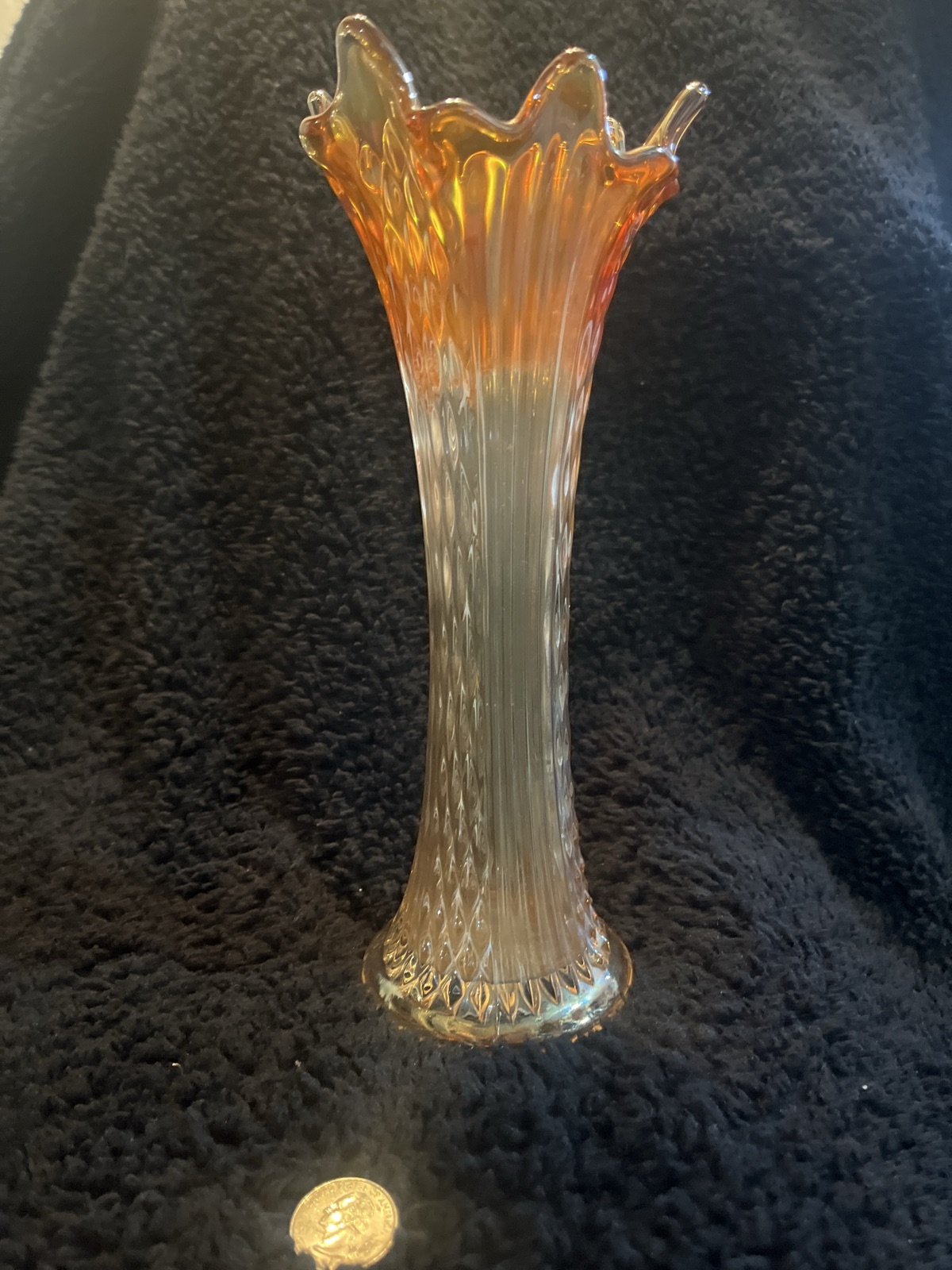 This is a classic 'swung' vase, a staple of American mid-century glassmaking where a hot piece of glass was literally swung in the air to create its elongated, organic shape.