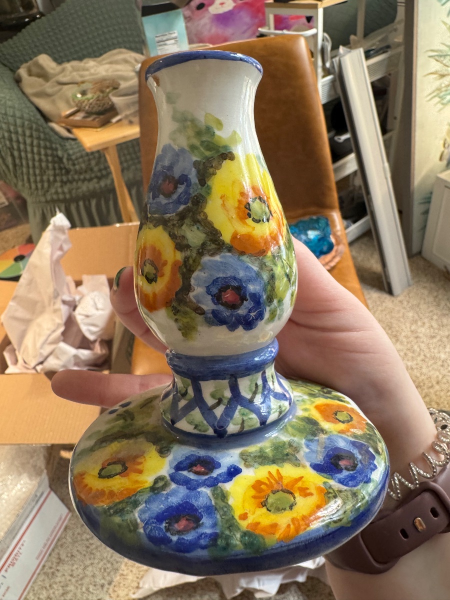 There appear to be visible small chips on the upper rim and some wear/discoloration on the unglazed foot ring, which is typical for earthenware of this age. Value is driven by the 'Venezia' provenance and the charm of the hand-painting; however, the market for mid-century Italian pottery from smaller workshops is currently…