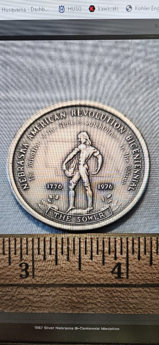 A high-relief commemorative medal struck to celebrate the United States Bicentennial, featuring iconic Nebraskan symbols including the State Capitol and 'The Sower.' It serves as a bridge between the nation's…