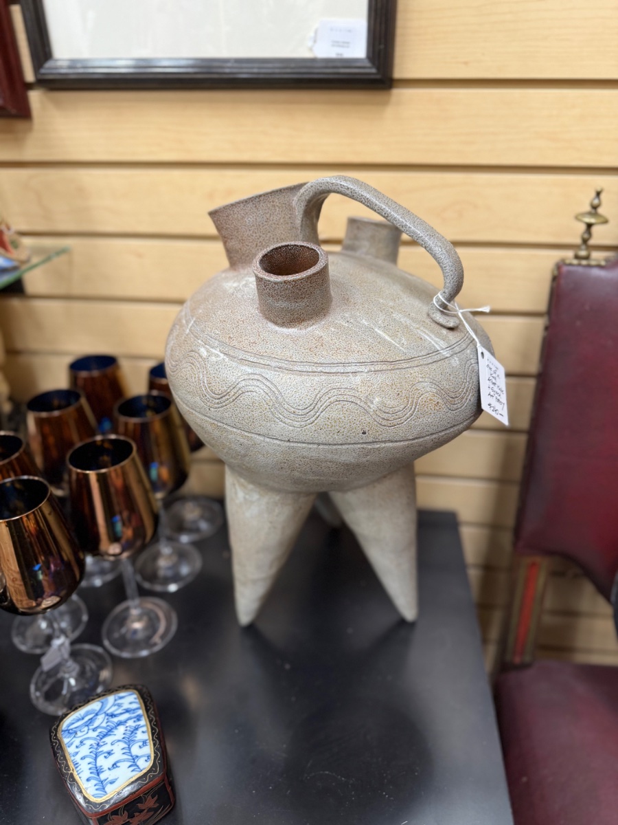 Based on the photograph, the vessel appears to be in excellent structural condition. Value is driven by the complexity of the form and the 'one-of-a-kind' studio nature.