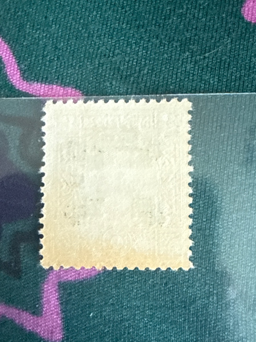 The stamp appears to be unused (mint) but shows significant 'toning' or yellowing on the reverse side. While historically fascinating, these surcharged stamps were produced in massive quantities.