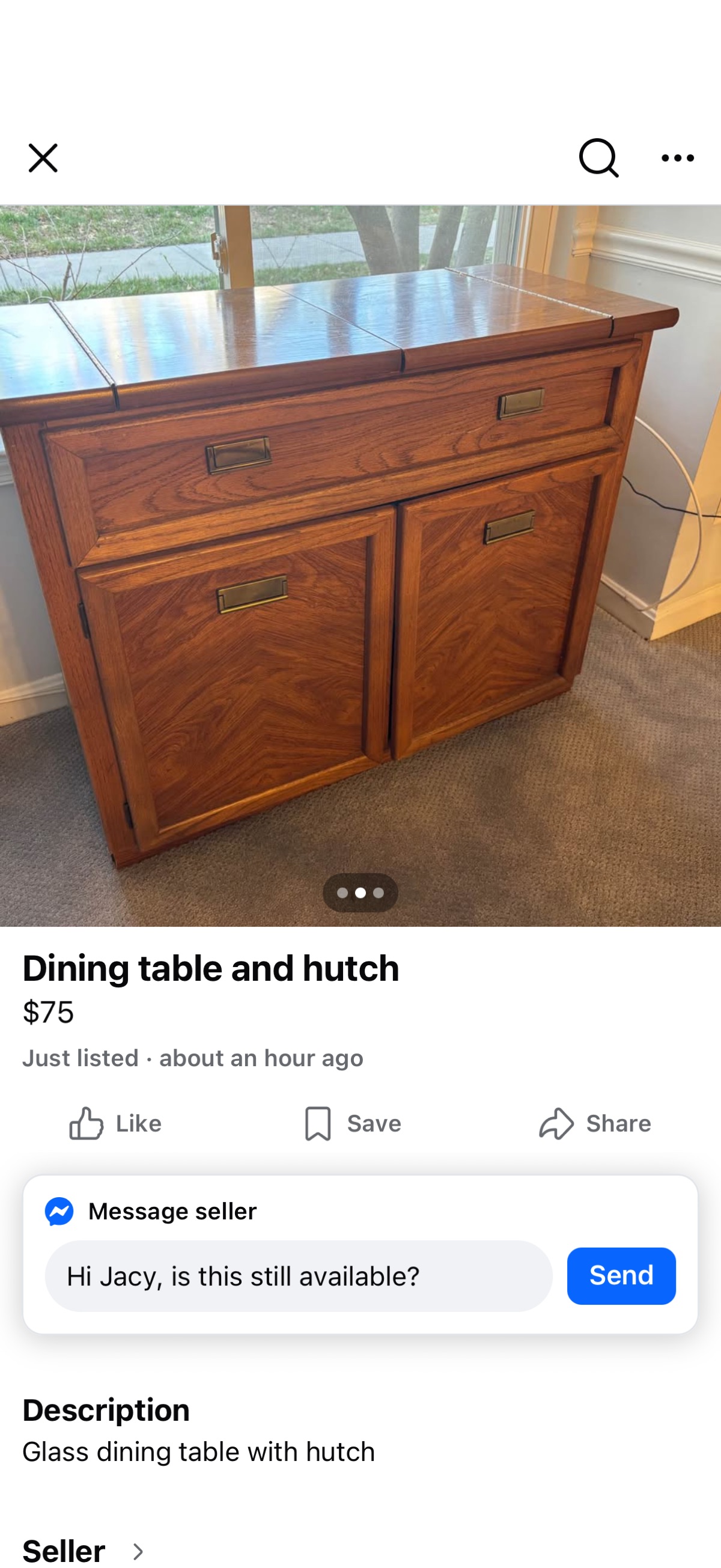 The piece appears to be in solid vintage condition with a beautiful honey-oak patina. While the seller is asking a bargain price of $75, these pieces are currently surging in popularity among vintage collectors for use as coffee stations or record player…