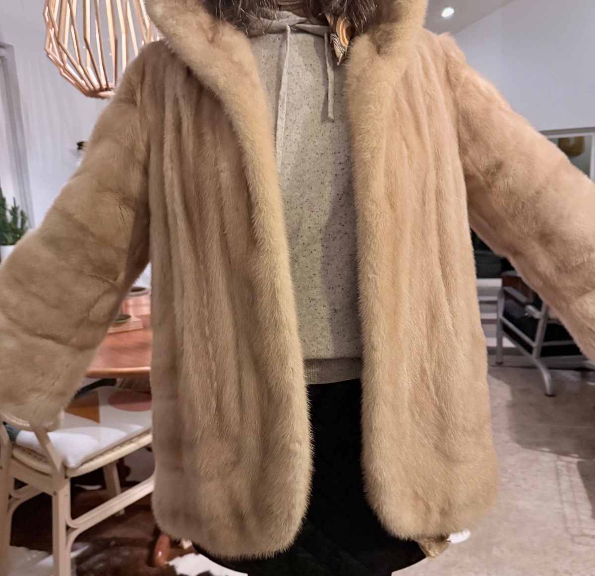 A classic mid-century 'swing' style fur coat crafted from high-quality 'blonde' or champagne mutation mink.