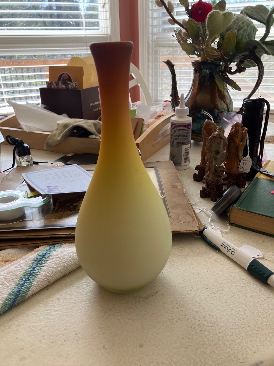 The vase appears to be in excellent condition with a very smooth color gradient. Standard Fenton Burmese pieces are popular but relatively common.