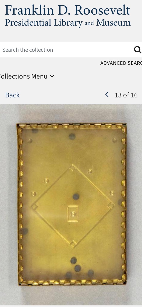 A pocket-sized 'dexterity' or 'glass-top' puzzle featuring a brass frame and a baseball diamond layout.