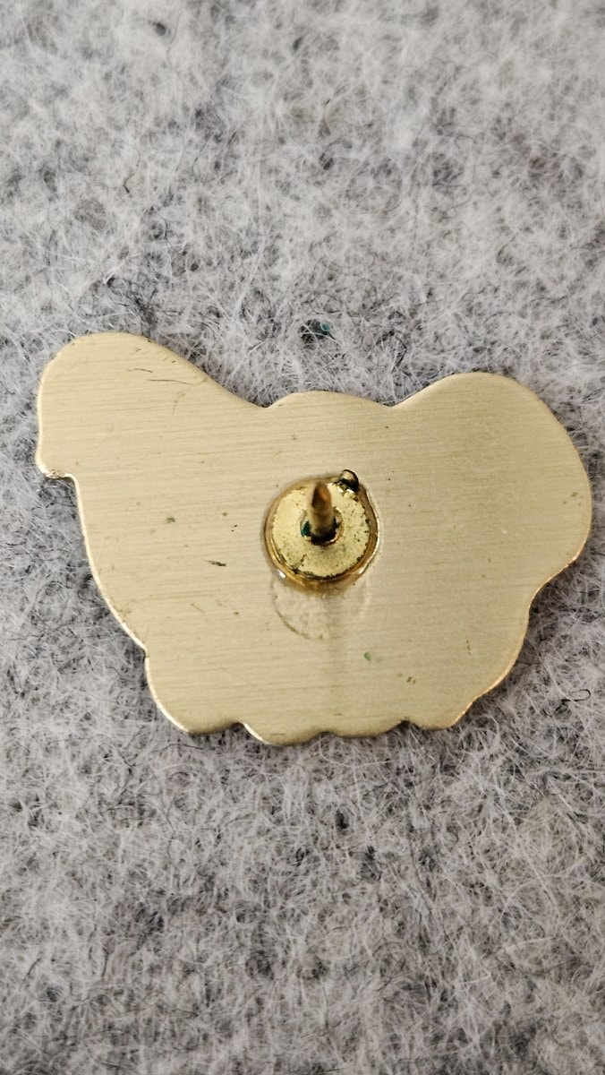 Without a maker's mark or copyright, this pin was likely produced by a commercial badge and trophy company for a local client.