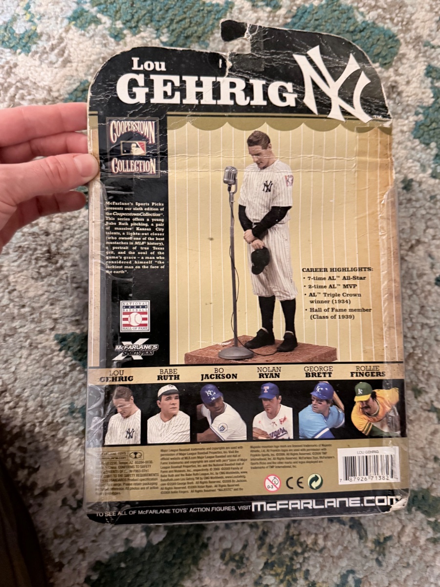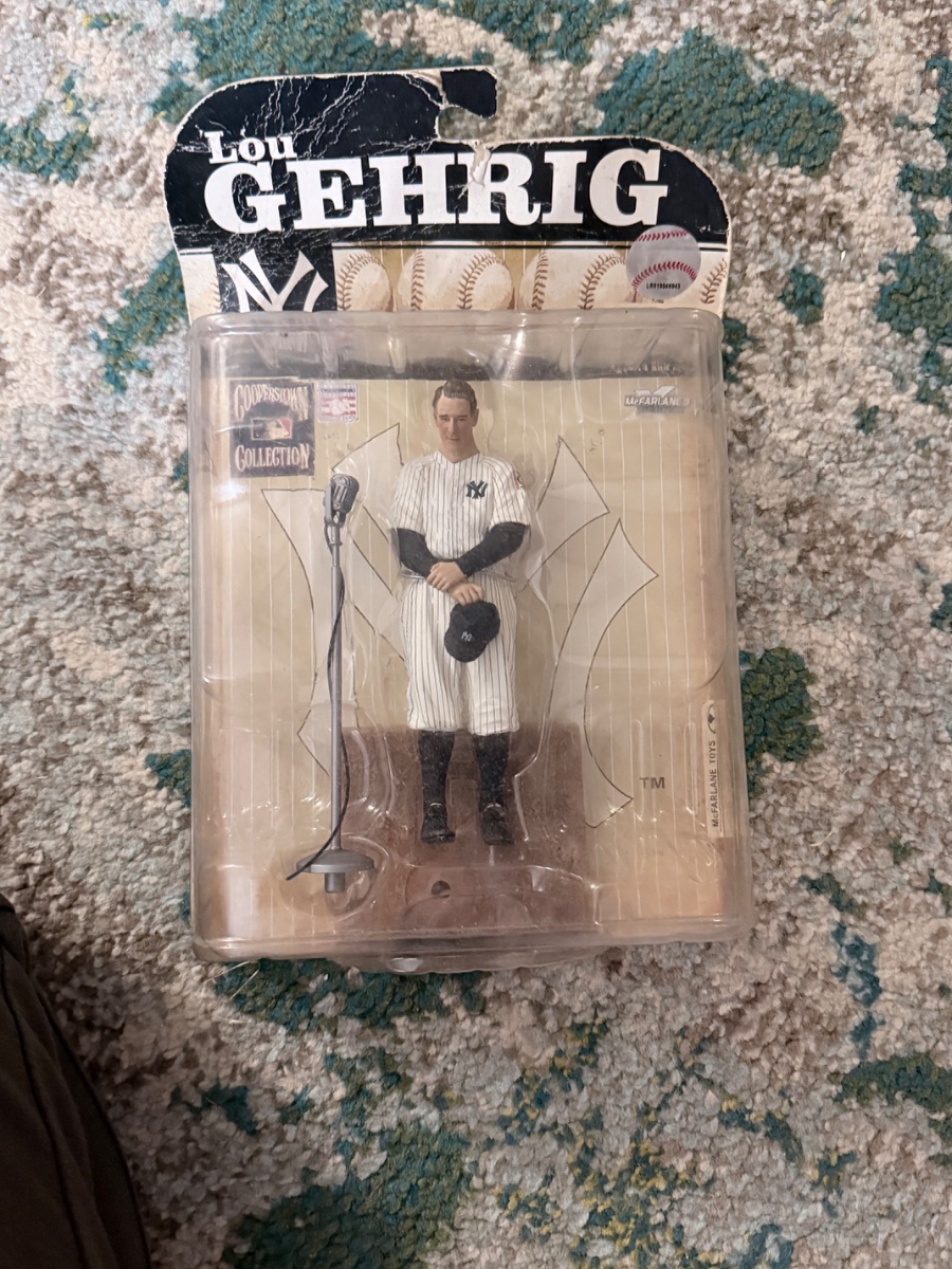 On July 4, 1939, a dying Lou Gehrig stood before a packed Yankee Stadium and declared himself the 'luckiest man on the face of the earth.' This figure immortalizes that exact second, capturing the humble tilt of his head and the weight of his 2,130…
