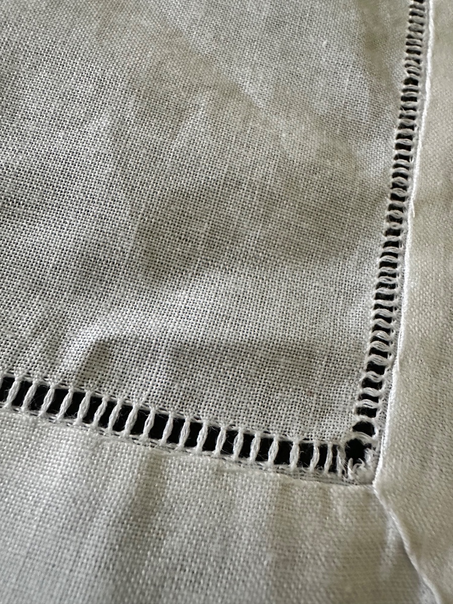 This is a classic example of drawn-thread work, where individual threads are painstakingly pulled from the weave to create a delicate, ladder-like openwork border.