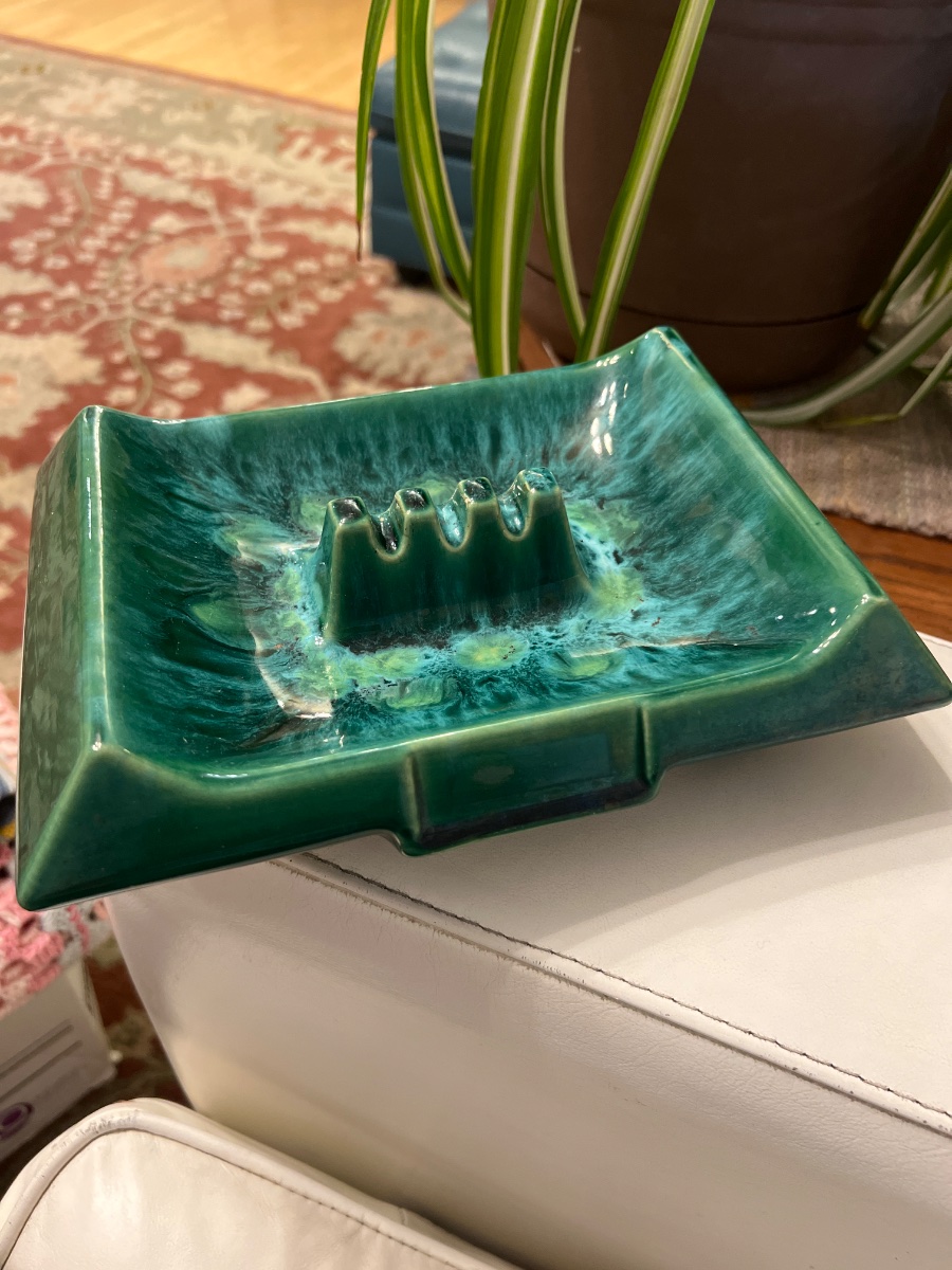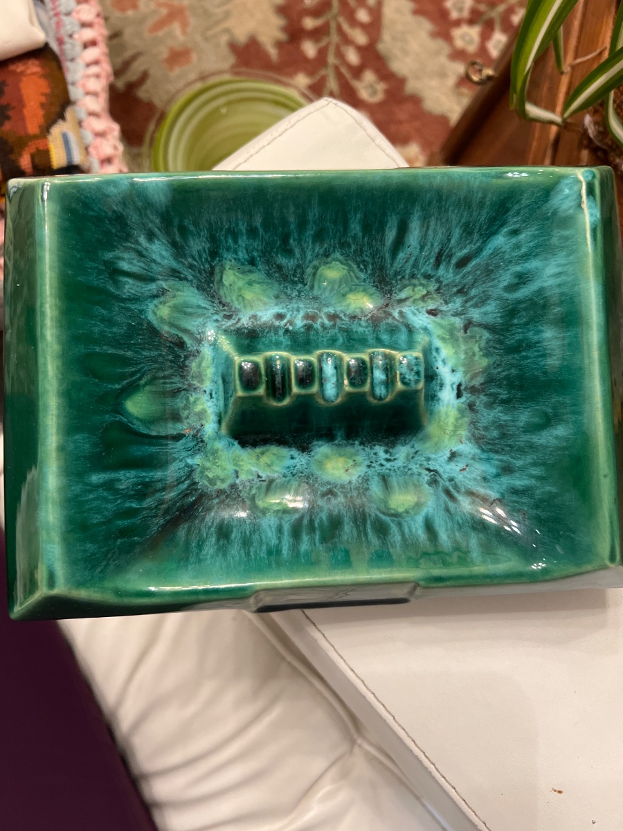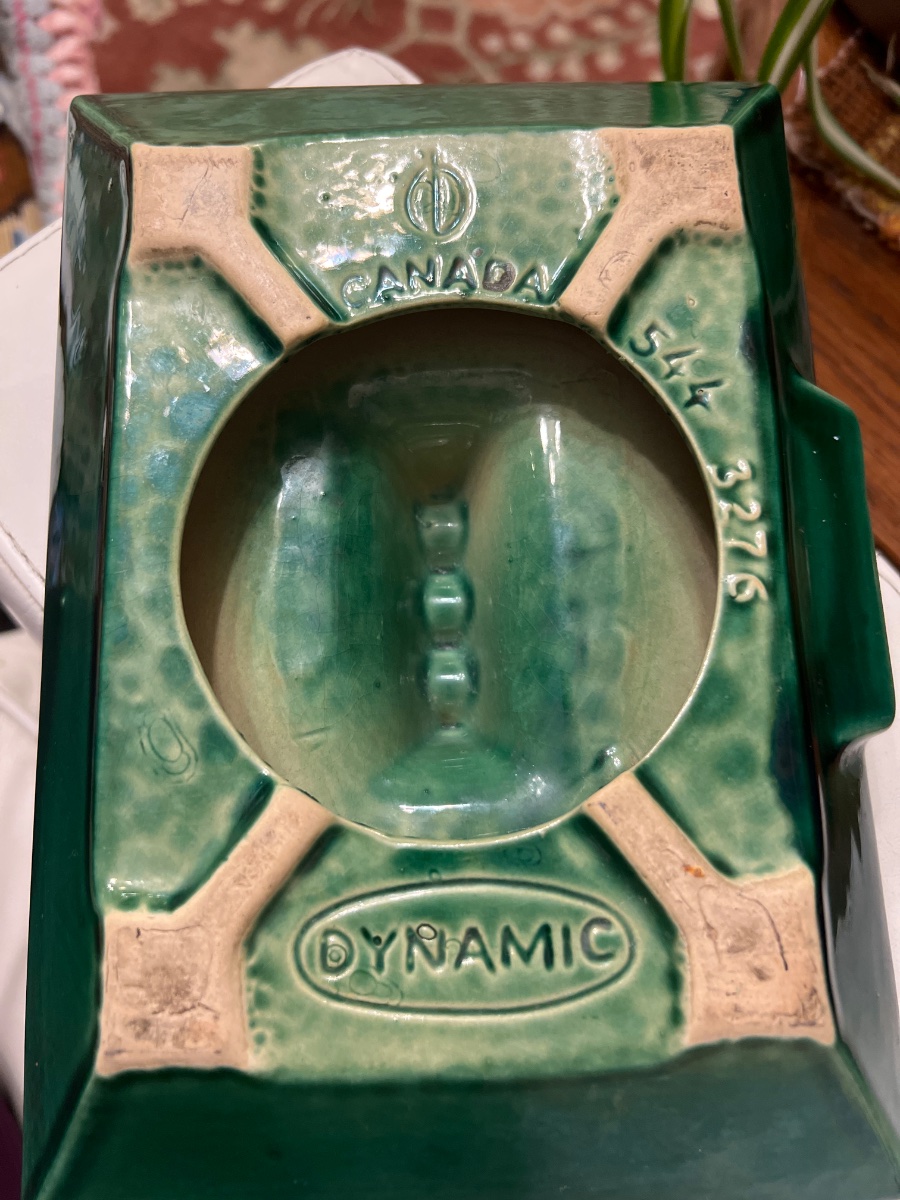 A quintessential piece of Canadian Mid-Century Modernism, this large-scale ceramic ashtray features the 'Dynamic' line's signature architectural form and a vibrant, reactive drip glaze.