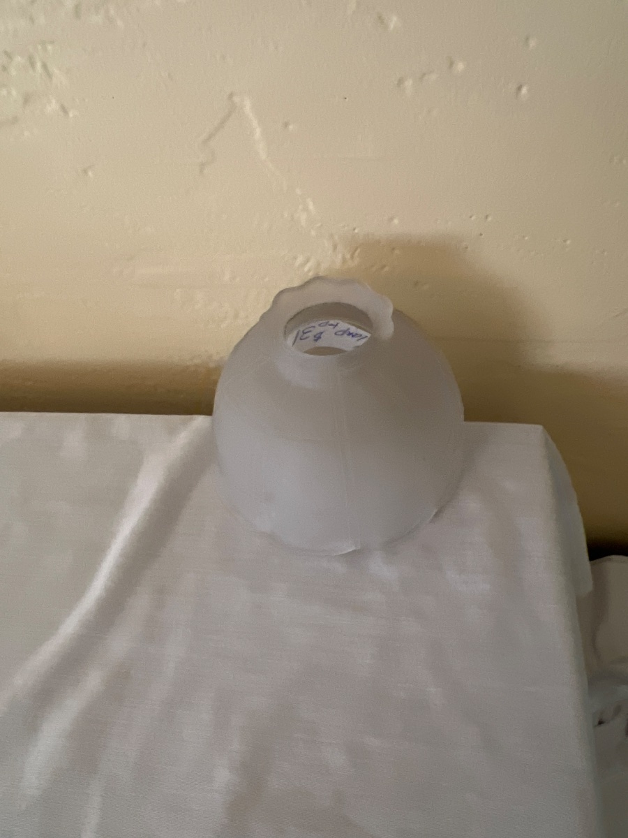 The frosted finish appears well-preserved without significant staining or 'ghosting.' There is a visible mold seam, which is a standard manufacturing characteristic of… Value for individual shades is driven by the 'fitter' size (the diameter of the bottom opening) and the rarity of the shape.