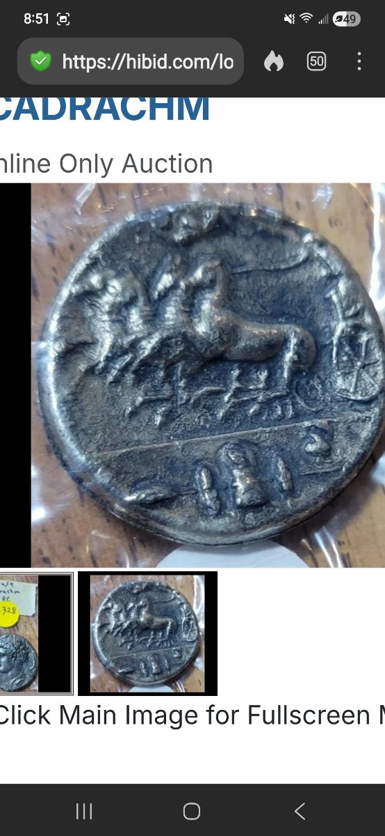 The coin exhibits a dark patina and significant surface pitting, which is a common indicator of a casting process used in replicas. While an authentic silver decadrachm can fetch $20,000 to over $150,000 at auction, the surface texture and 'soft' details of this piece suggest it is a modern…