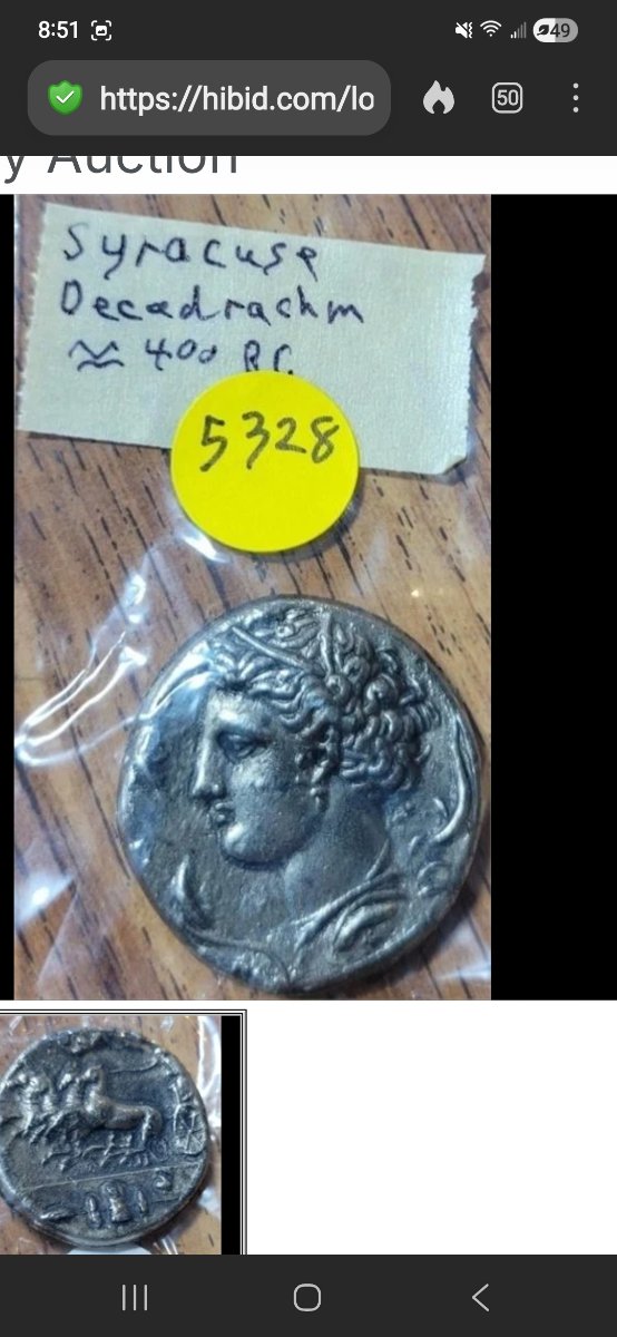 This piece represents the pinnacle of ancient numismatic art, featuring the water nymph Arethusa surrounded by dolphins and a triumphant four-horse chariot.