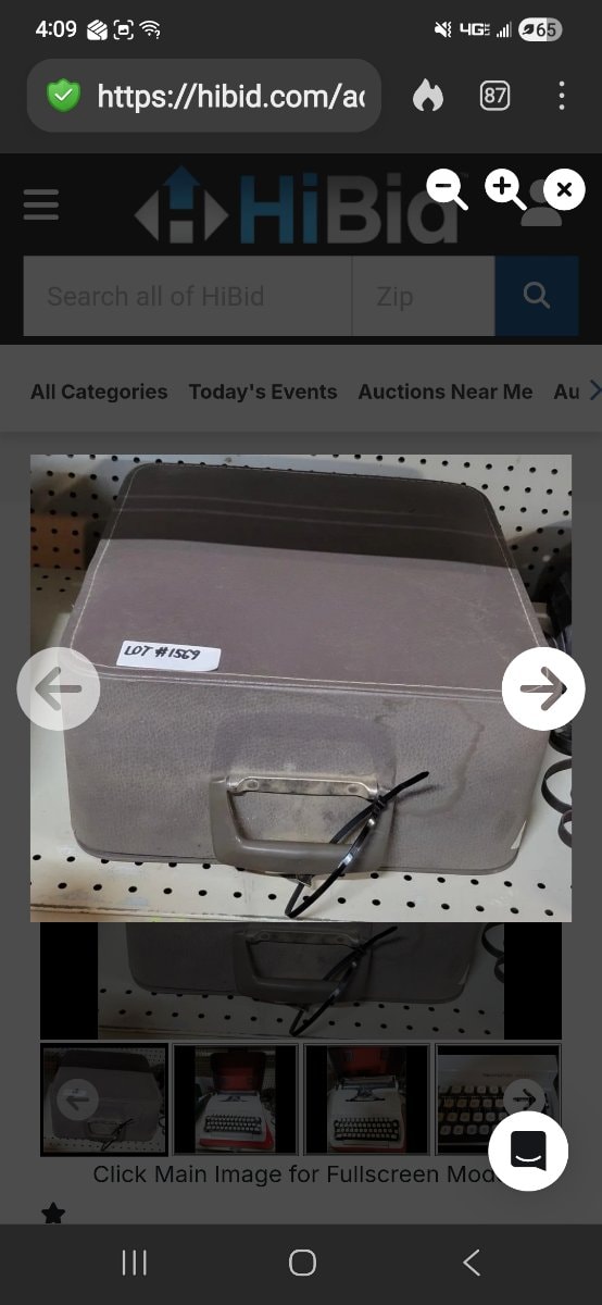 The exterior shows typical light dust and minor surface scuffing consistent with age. The carrying case appears intact, though the presence of a zip-tie on the handle suggests the latch mechanism may be loose or damaged. Mechanical condition of the keys and ribbon advance is unverified.