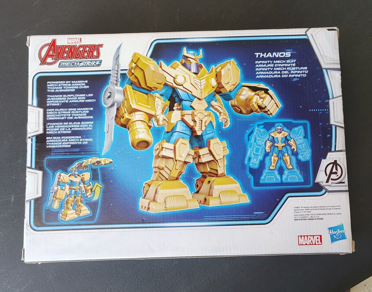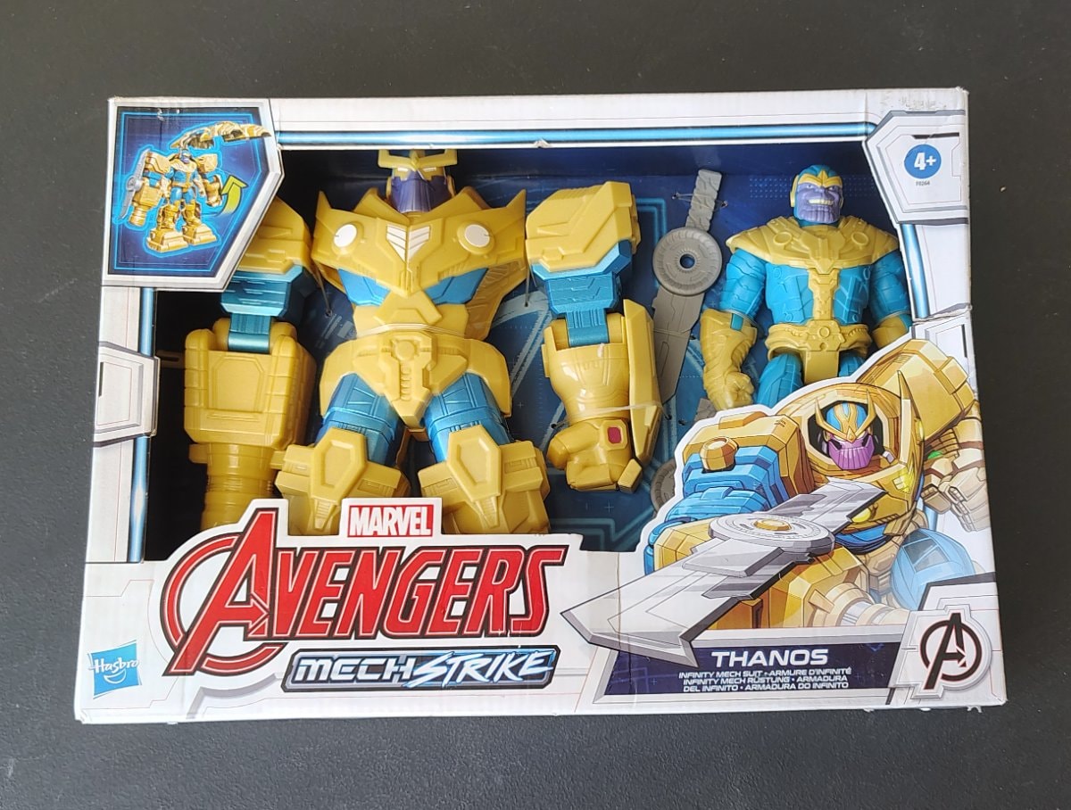 This is a 'Mech Strike' series Thanos, featuring a standard action figure that nests inside a larger, transformable robotic exoskeleton.