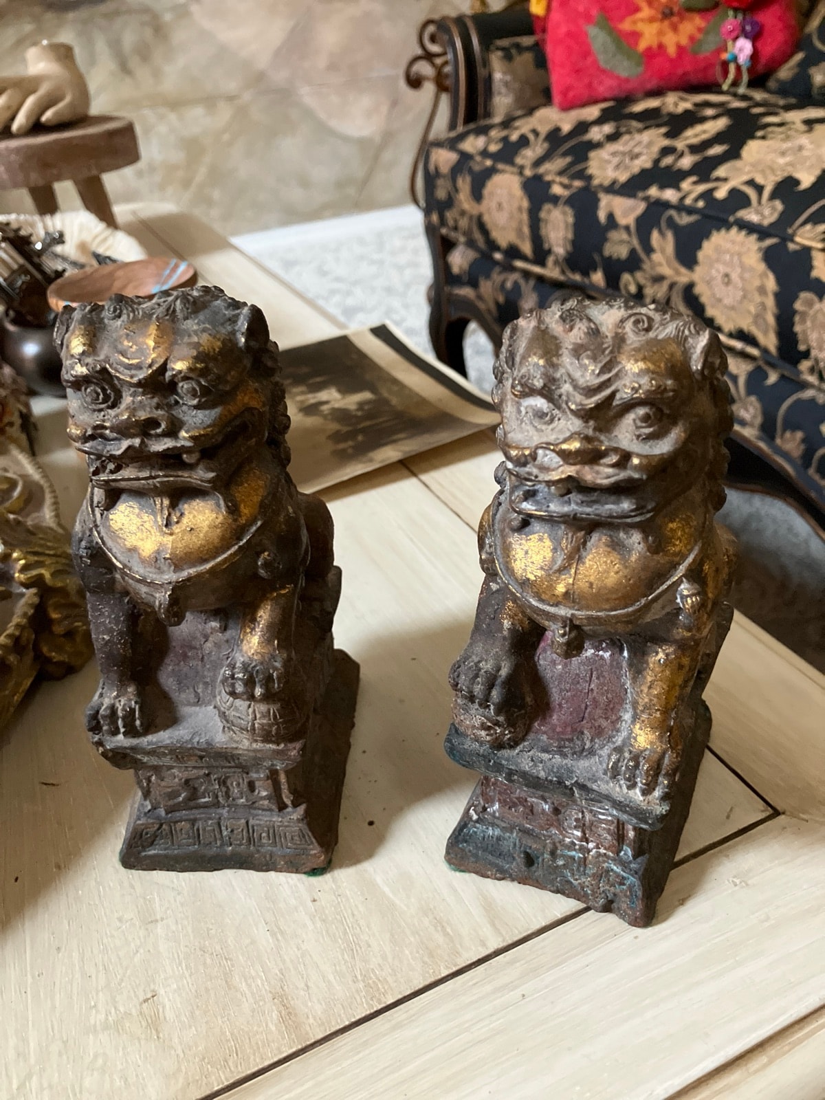 While likely the product of a regional foundry rather than a single named artist, these lions represent a centuries-old tradition of Chinese metalwork.
