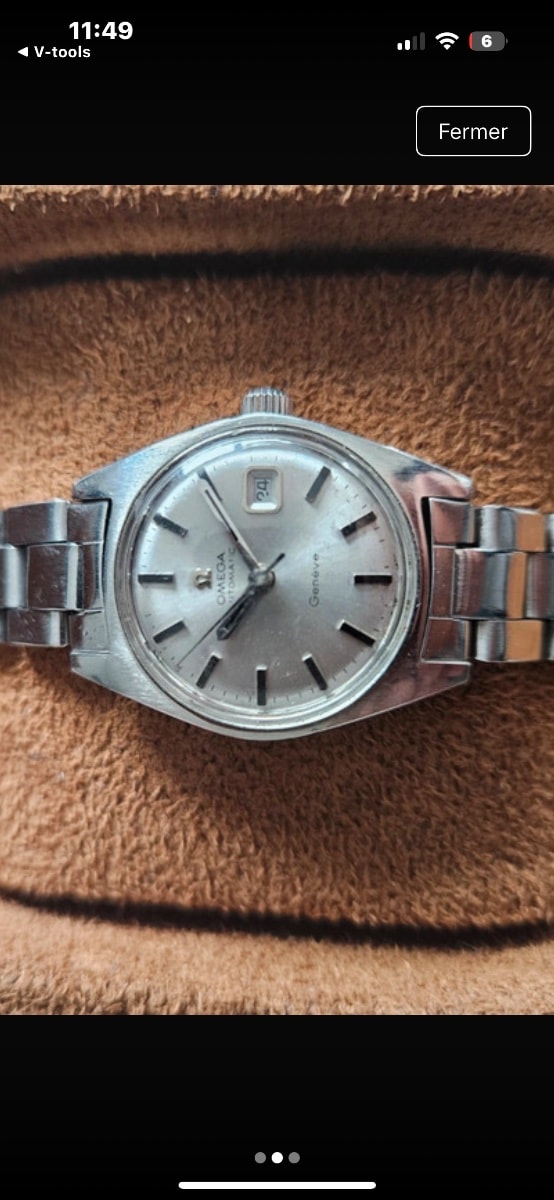 A classic example of mid-century Swiss precision, this Omega Genève features a self-winding automatic movement and a clean, minimalist sunburst dial.