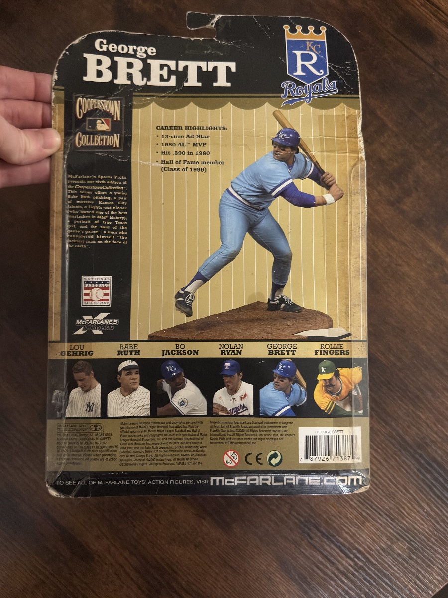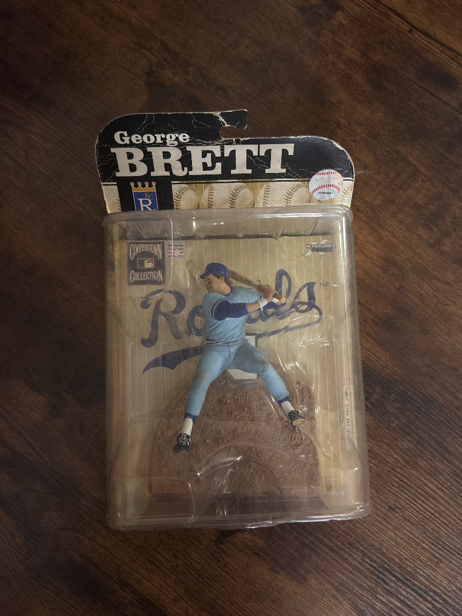 This is a hyper-realistic, 6-inch scale action figure of Kansas City Royals legend George Brett, part of the acclaimed Cooperstown Collection.