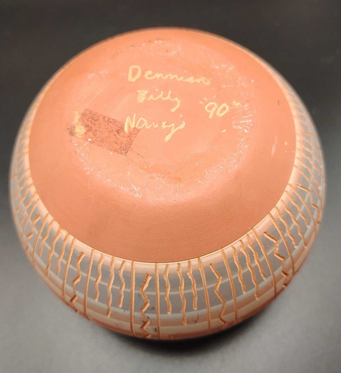 Dennison Billy is a recognized Navajo artist known for his precision and his ability to layer colored slips before carving through them.