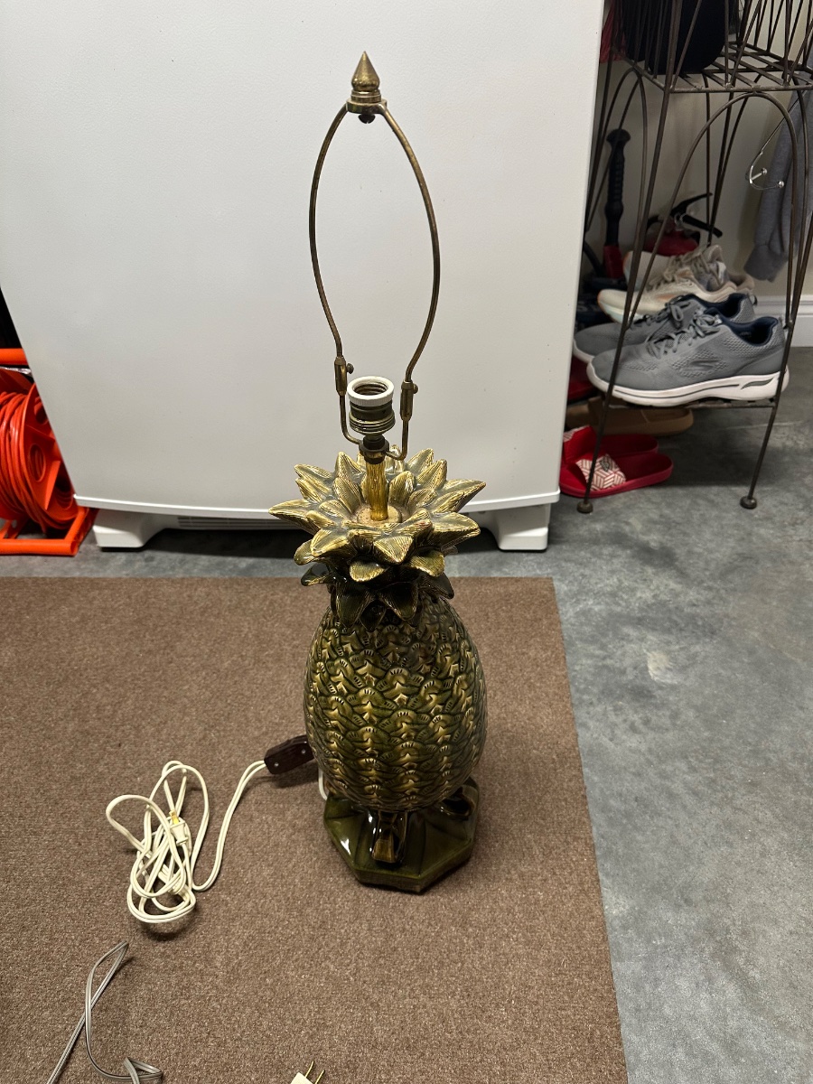 This is a quintessential piece of Hollywood Regency decor, featuring a bold, sculptural pineapple form finished in a rich, high-gloss avocado green glaze.