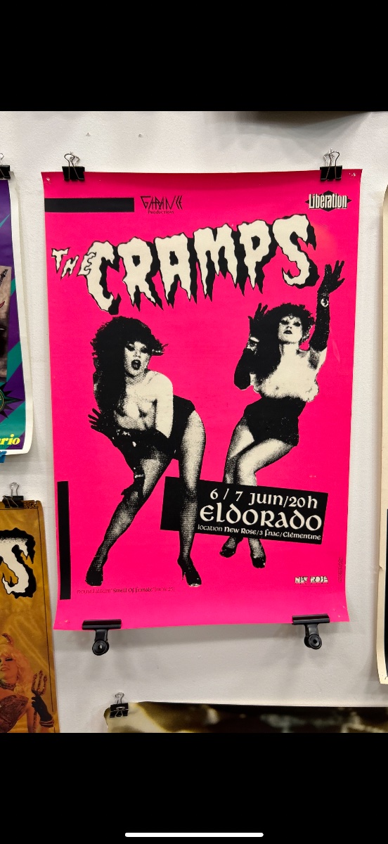An iconic original promotional poster for The Cramps' 1983 residency at the Eldorado theater in Paris.