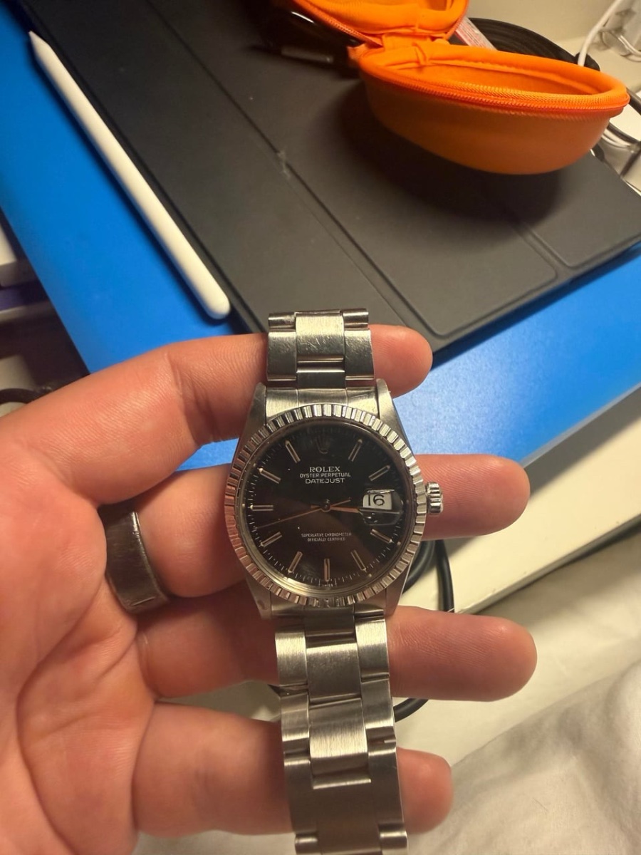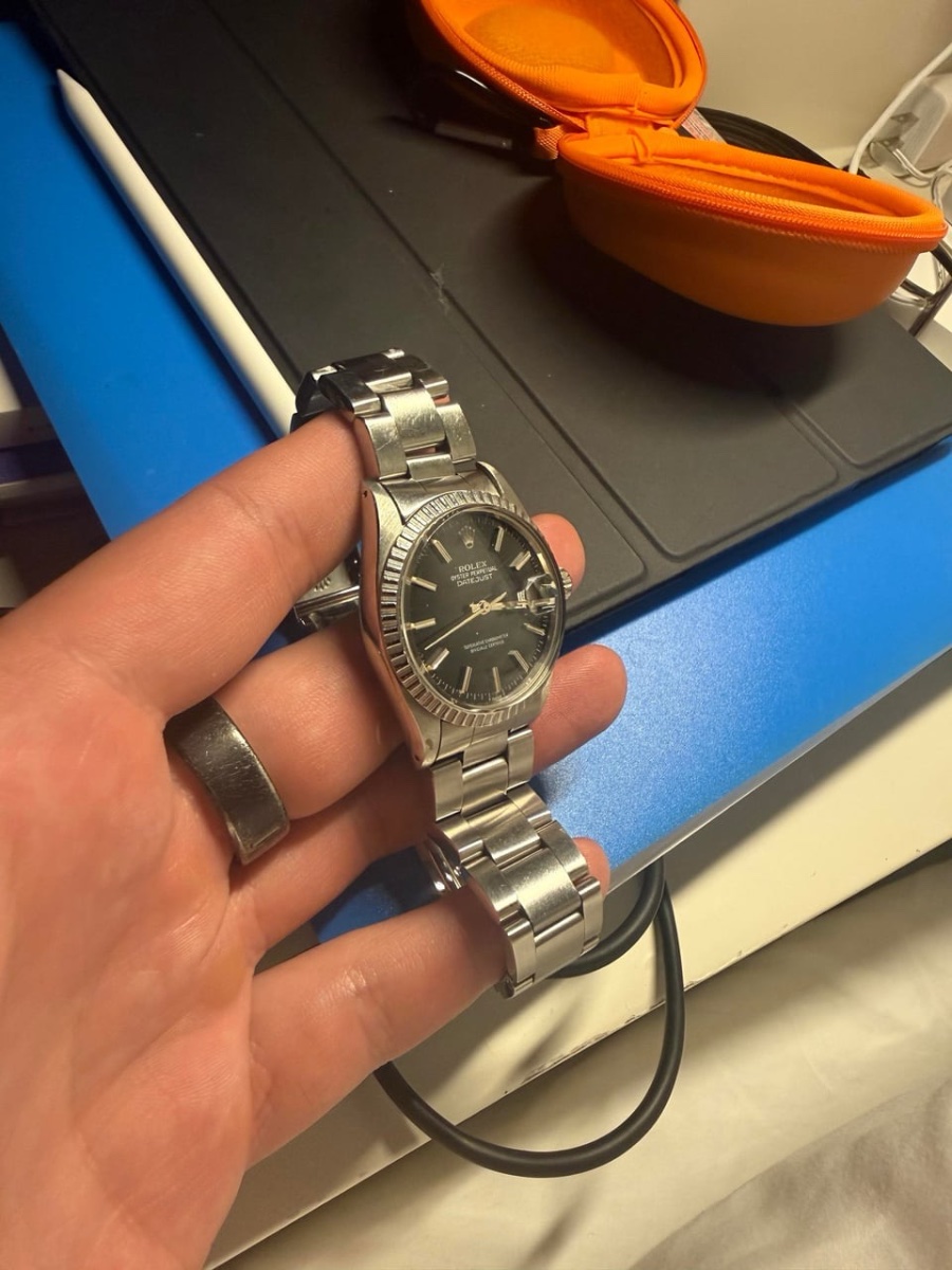 In 1945, Rolex released the Datejust to celebrate their 40th anniversary, and it became the first self-winding wrist chronometer to display the date in a window on the dial.