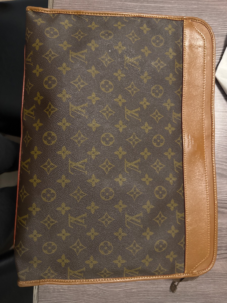 A classic professional accessory crafted from the house's signature monogram coated canvas with Vachetta leather trim and a wrap-around brass zipper.