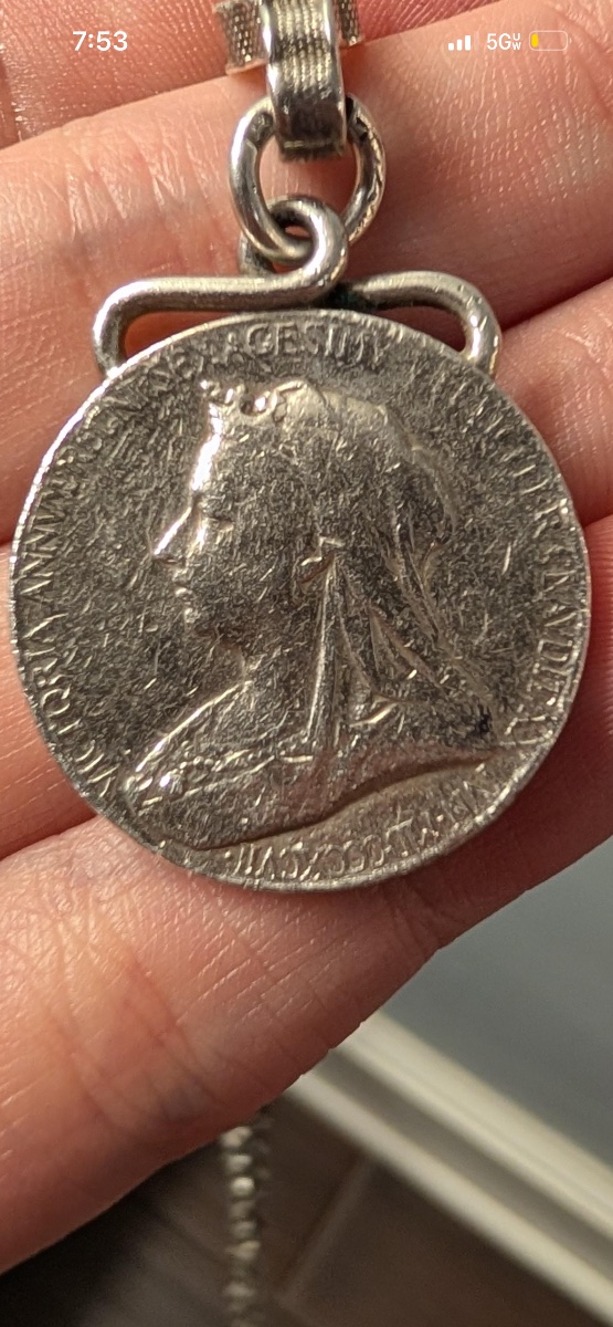 The medal shows significant surface wear and pitting, consistent with being worn as a necklace for many years. The value is driven by the silver content and historical appeal as jewelry.