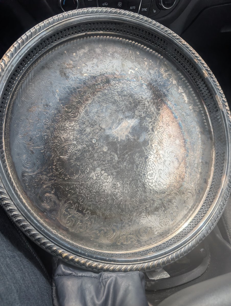 The top surface retains a good amount of its silver plating with a nice patina, but the underside shows significant tarnish and 'bleeding' where the silver has worn away… Silver-plated items are valued for their decorative utility rather than their metal content.