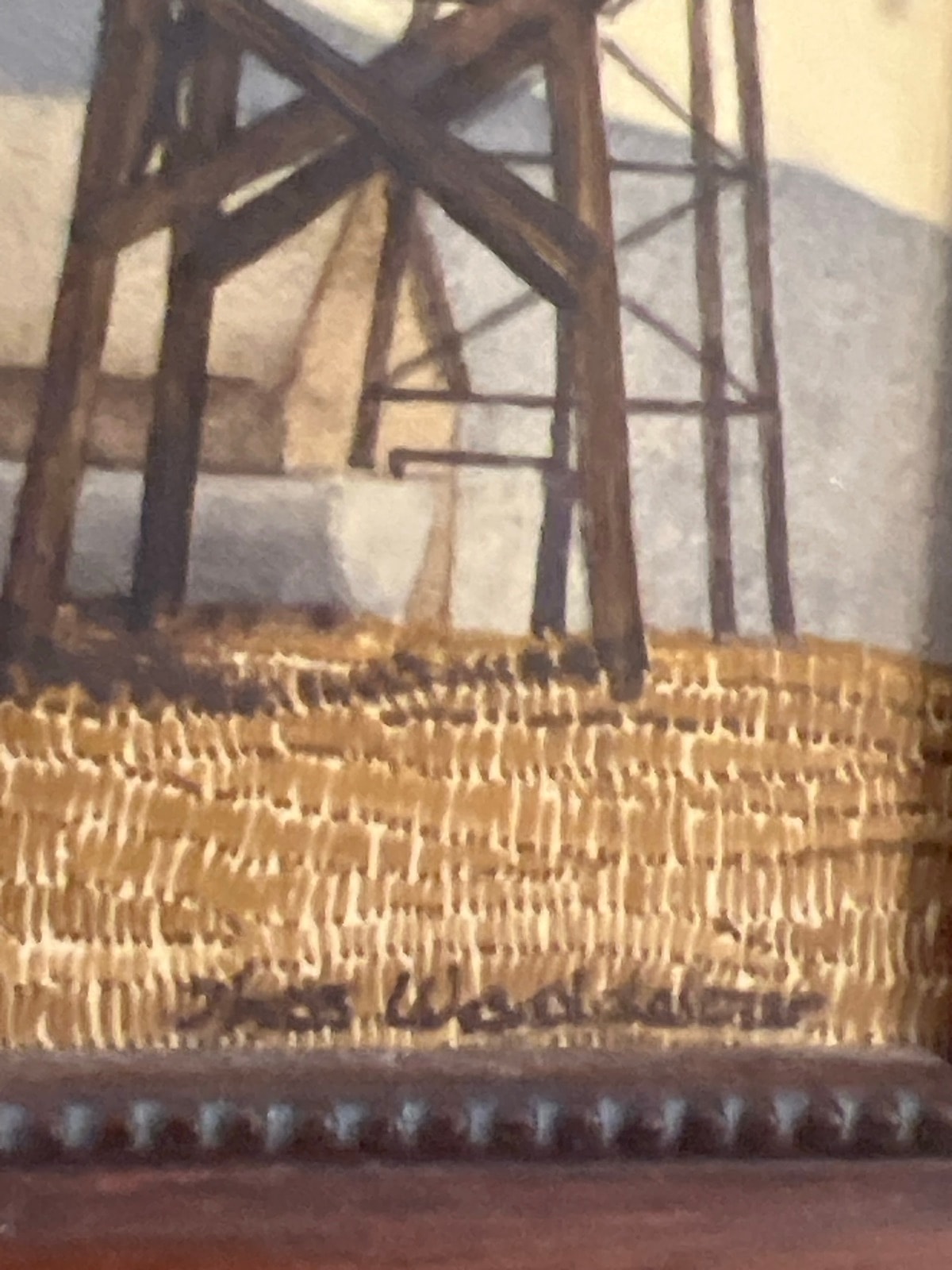 Thomas "Thos" Waddelow (American, 1921–2017) was a prolific California regionalist and folk artist, best known for his nostalgic landscapes, coastal scenes, and miniature architectural studies. Based in Venice, California, Waddelow was a highly recognizable fixture at the Laguna Beach Festival of Arts, where he exhibited extensively for over thirty years. His work captures the quiet dignity of mid-20th-century rural life, often functioning as "memory paintings" that focus on vanishing agricultural structures, barns, windmills, and maritime subjects. Waddelow almost exclusively executed his works in oil or acrylic on rigid supports, such as masonite, wood panels, or artist board. He frequently crafted his own period-appropriate frames, making his standard cabinet and elongated panoramic formats highly distinct. Today, his works maintain a stable and localized secondary market presence. They are frequently handled by West Coast regional auction houses like John Moran Auctioneers and Hughes Auctions, where they appeal to collectors seeking accessible, original California folk art.