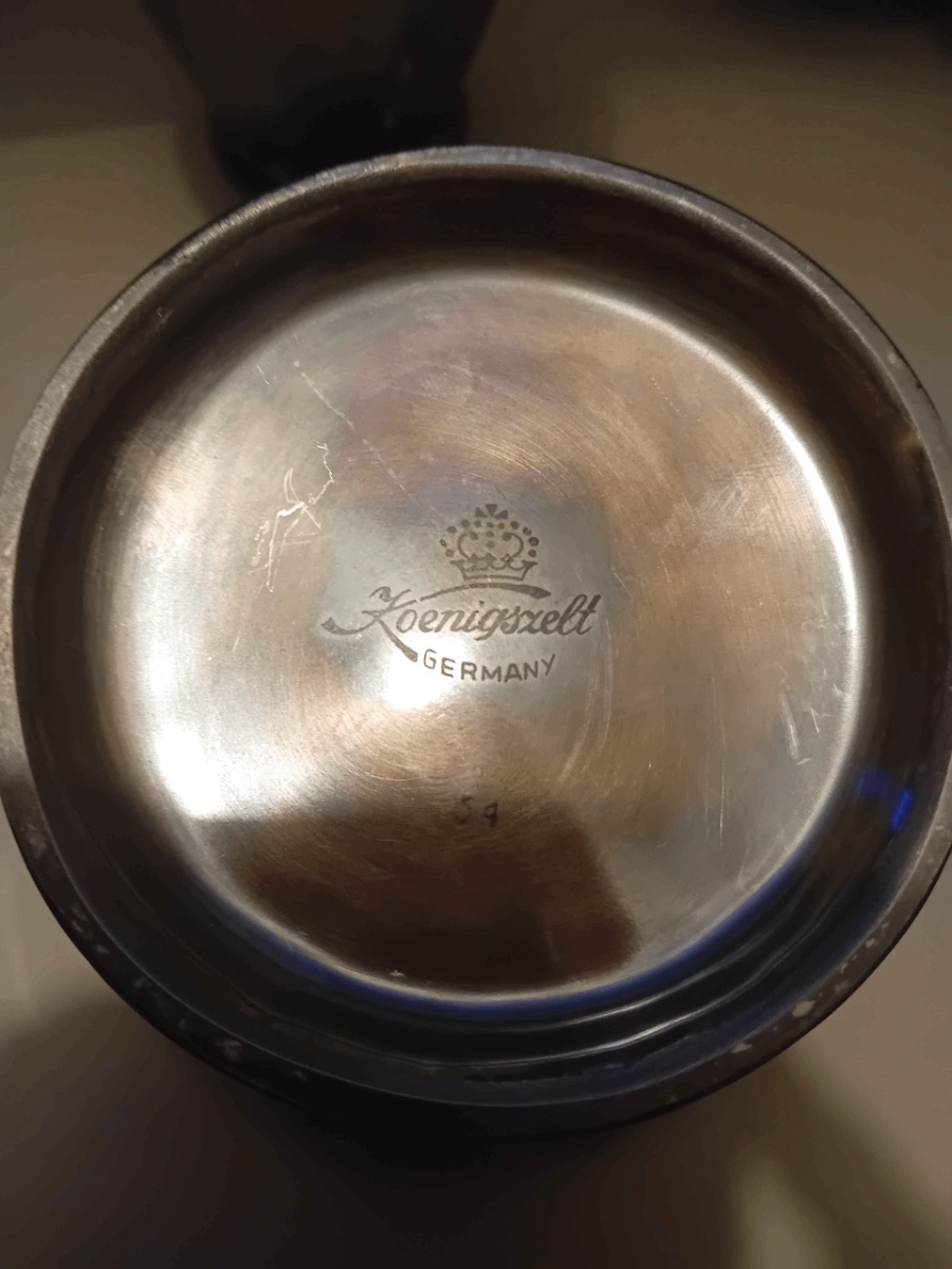 During the 1930s Art Deco period, Koenigszelt embraced modernist aesthetics, producing streamlined forms clad in brilliant 'Silberporzellan' (silver porcelain) luster and metallic overlays. They occasionally collaborated with the prestigious metalware firm WMF (Württembergische Metallwarenfabrik) on these silvered wares. Following World War II, shifting geopolitical borders placed Silesia in Poland; the Koenigszelt factory was nationalized and eventually renamed Karolina. As a result, pieces bearing the specific 'Koenigszelt GERMANY' stamp are firmly locked to the pre-1945 historical timeline.