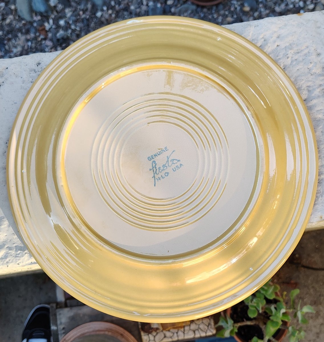 The secondary market for Post-1986 Fiestaware remains highly liquid, though highly segmented between uncurated auction platforms and curated specialist dealers. Strong retail comparables establish a firm ceiling of $30 to $40 for a single pristine yellow divided plate. However, uncurated auction clearing prices for single pieces sit closer to the $11 to $15 range, especially if minor utensil wear is present. Because this valuation is for a pair, the FMV of $30 to $50 applies a realistic aggregate auction estimate, acknowledging that buyers expect a slight bulk discount when purchasing multiples outside of a direct replacement service context. The specific 1987-2002 'Pale Yellow' glaze carries a modest premium over currently circulating colors due to its retired status.
