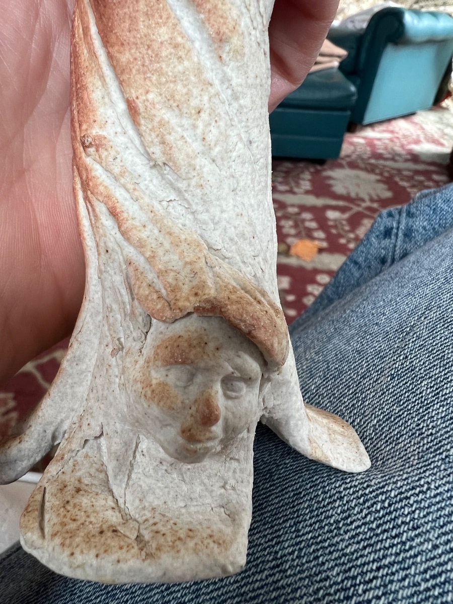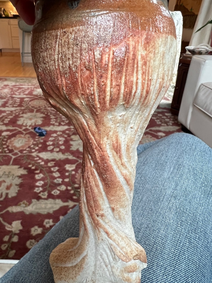 The owner notes an impressed artist's mark that resembles a scorpion. While literal scorpion marks exist in 20th-century ceramics (notably Siddig El Nigoumi in the UK and El Palomar in Mexico), those studios produced vastly different styles of pottery. In the context of American sculptural stoneware, it is highly probable that the 'scorpion' is a stylized or interlocking cursive monogram (such as 'JS' or 'SB') that appears abstract when viewed sideways or upside-down. Until the chop mark is definitively deciphered, attribution remains rooted in the broader American folk and studio craft tradition.