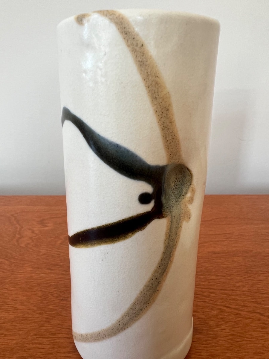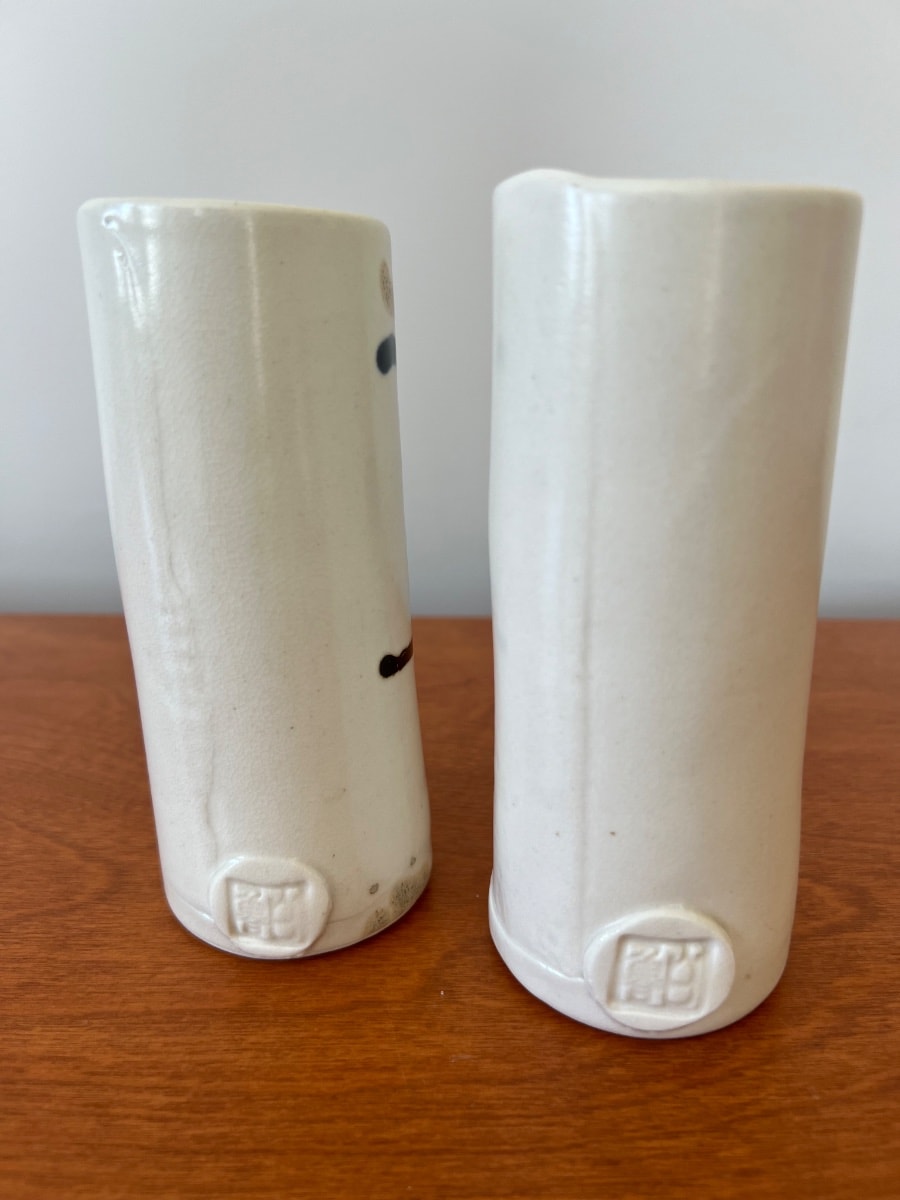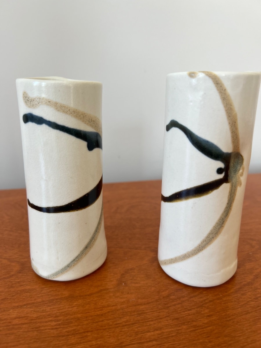 Because direct, named auction records for Bloom's smaller utilitarian works are highly localized and sparse, this valuation is market-informed and relies on regional proxies for contemporary Western Canadian studio pottery. A recent mixed estate lot of six Canadian studio ceramics cleared at $160, while a cohesive set of four regional drinking vessels sold for $100, establishing a baseline of $25 to $40 per piece for standard utilitarian forms. Singular vases command a slightly higher premium in this category, evidenced by an $85 secondary market clearing price. The confirmed presence of Bloom's specific studio chop mark elevates these pieces above generic or unsigned regional wares, establishing these proxies as a conservative baseline rather than a ceiling. However, value remains strictly constrained by condition, and grouping these vessels as a single, cohesive artist lot maximizes their auction appeal compared to selling them individually.