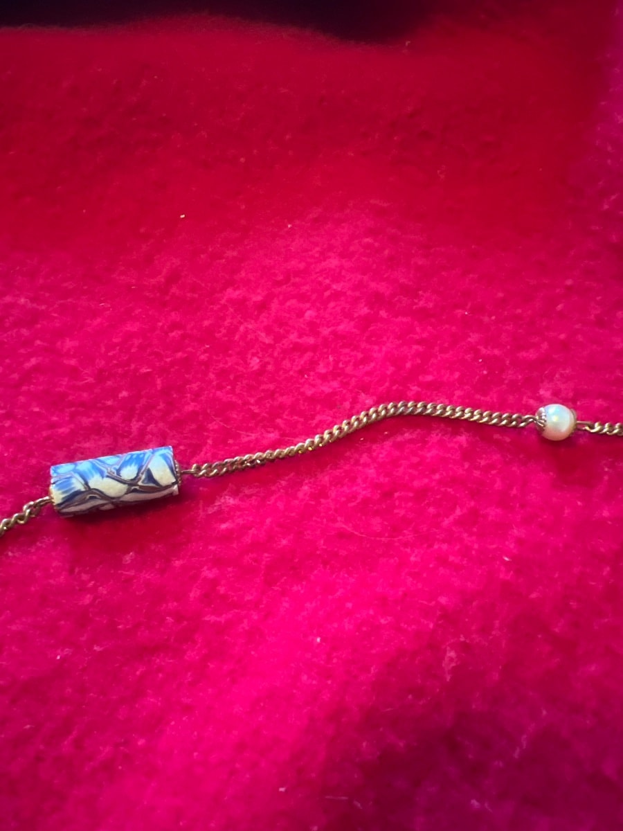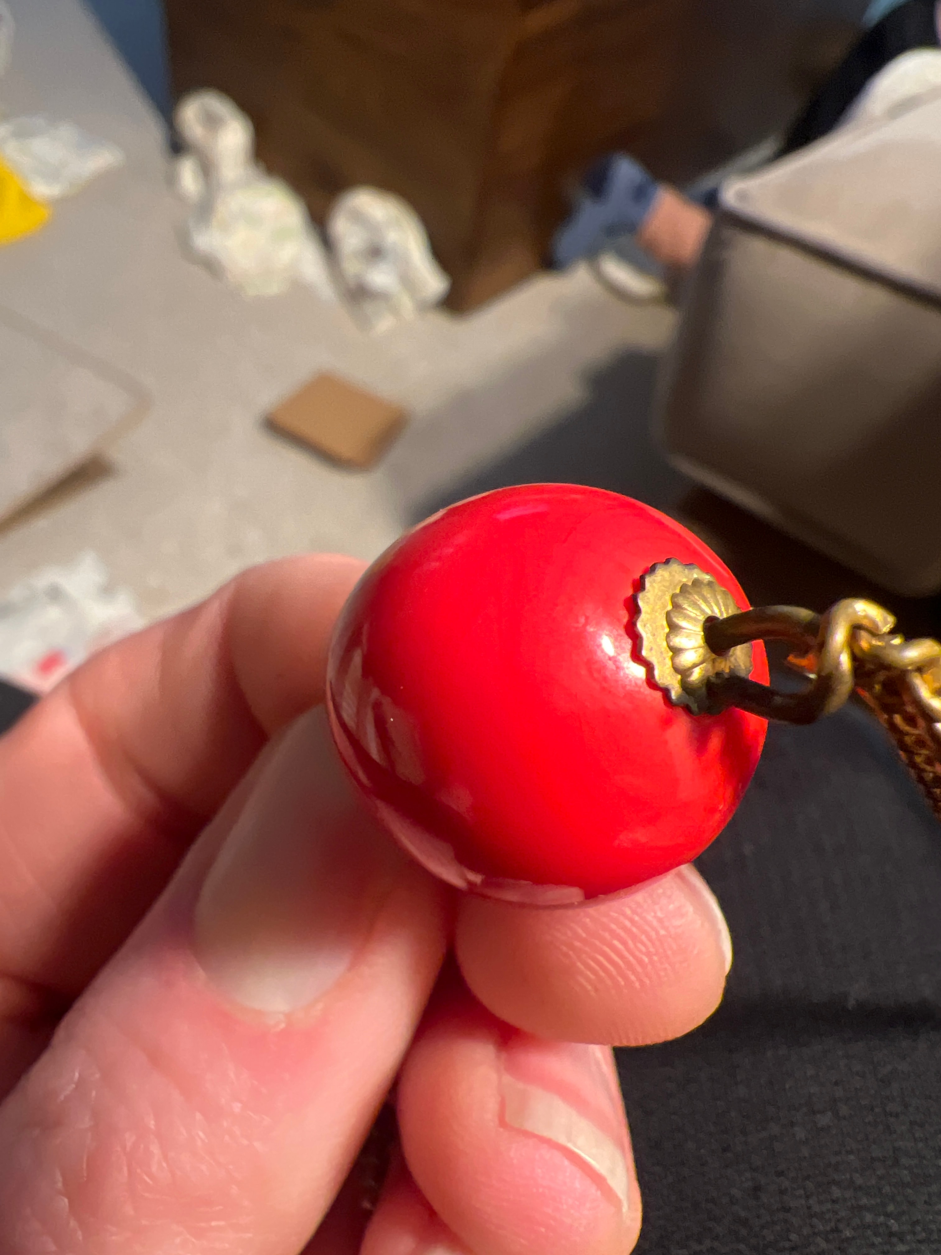 ▼ Potential condition issues such as chipped lampwork glass or peeling on the faux pearls heavily penalize value