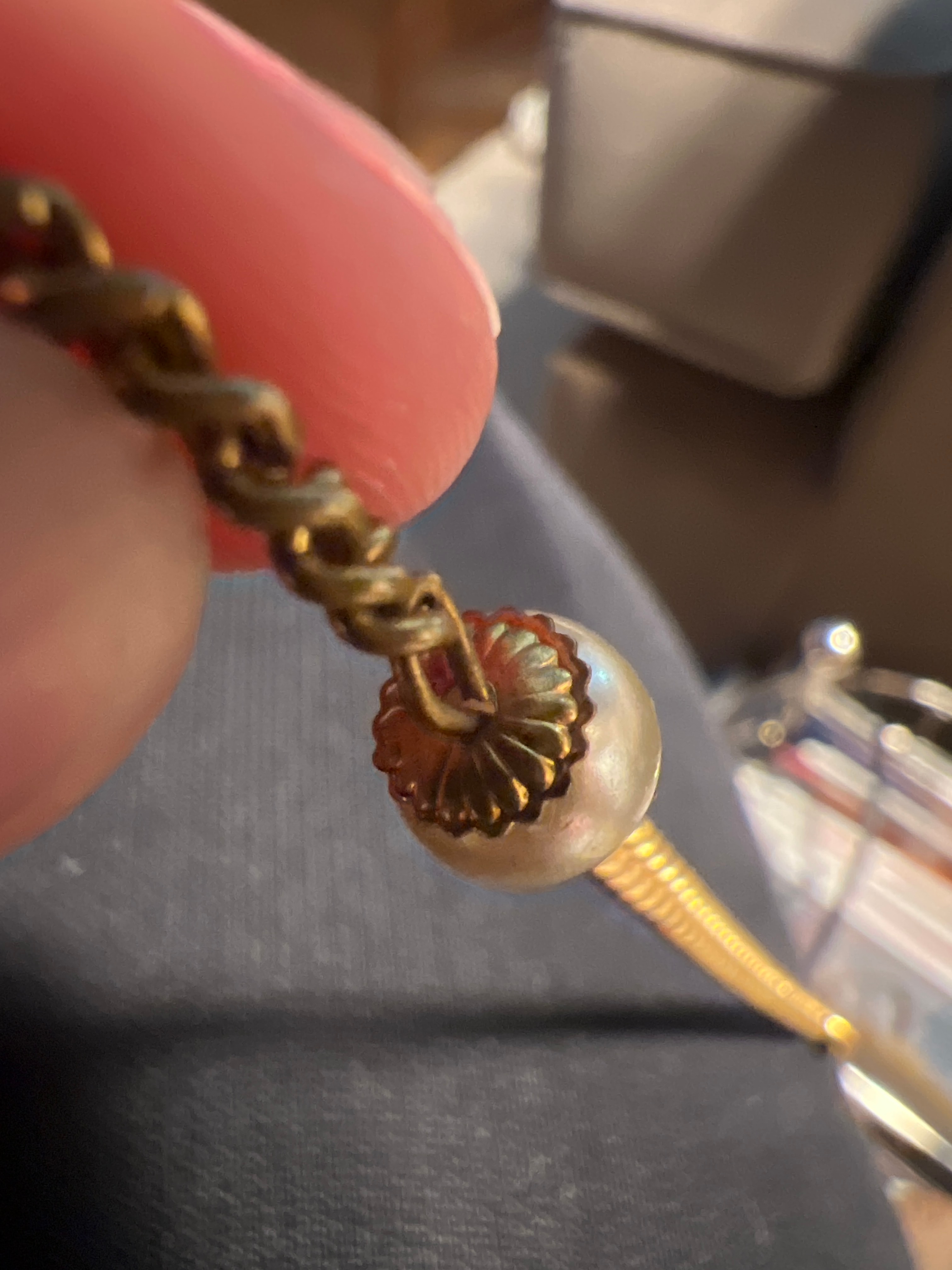Confirmation of precious metal components (e.g., a stamped silver-tone or gold-tone clasp obscured in current photos) or documented authentication of the pearls as high-grade cultured saltwater would raise the intrinsic material floor.