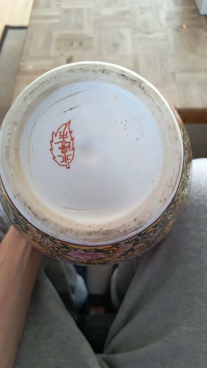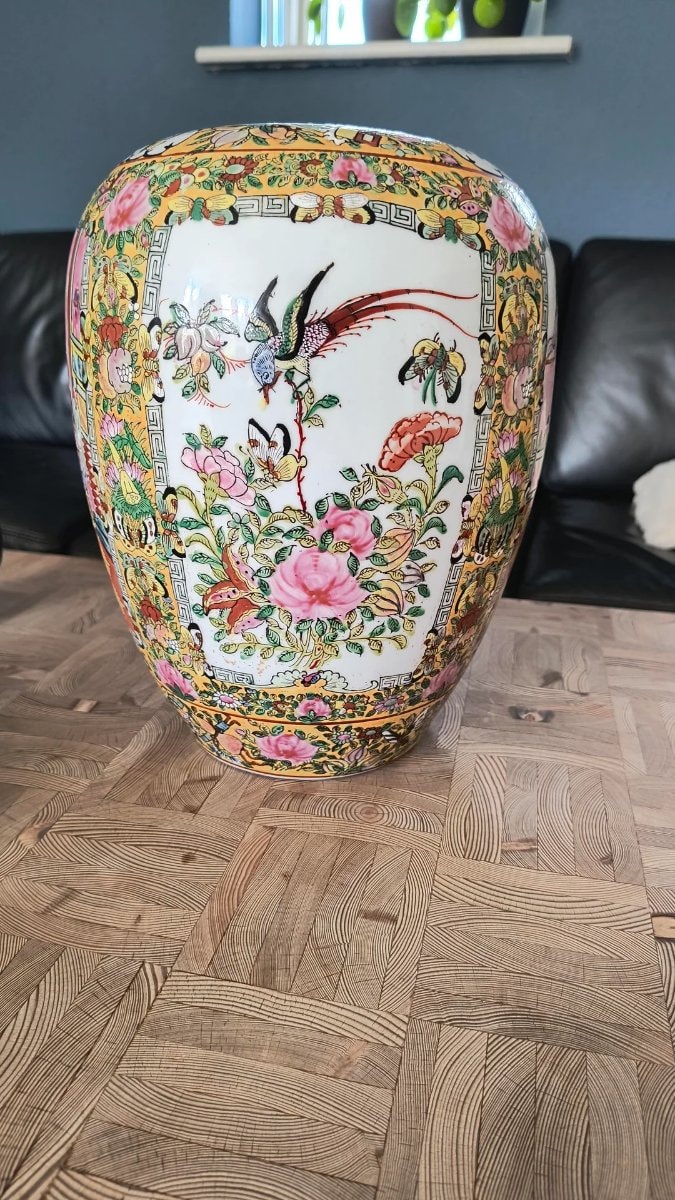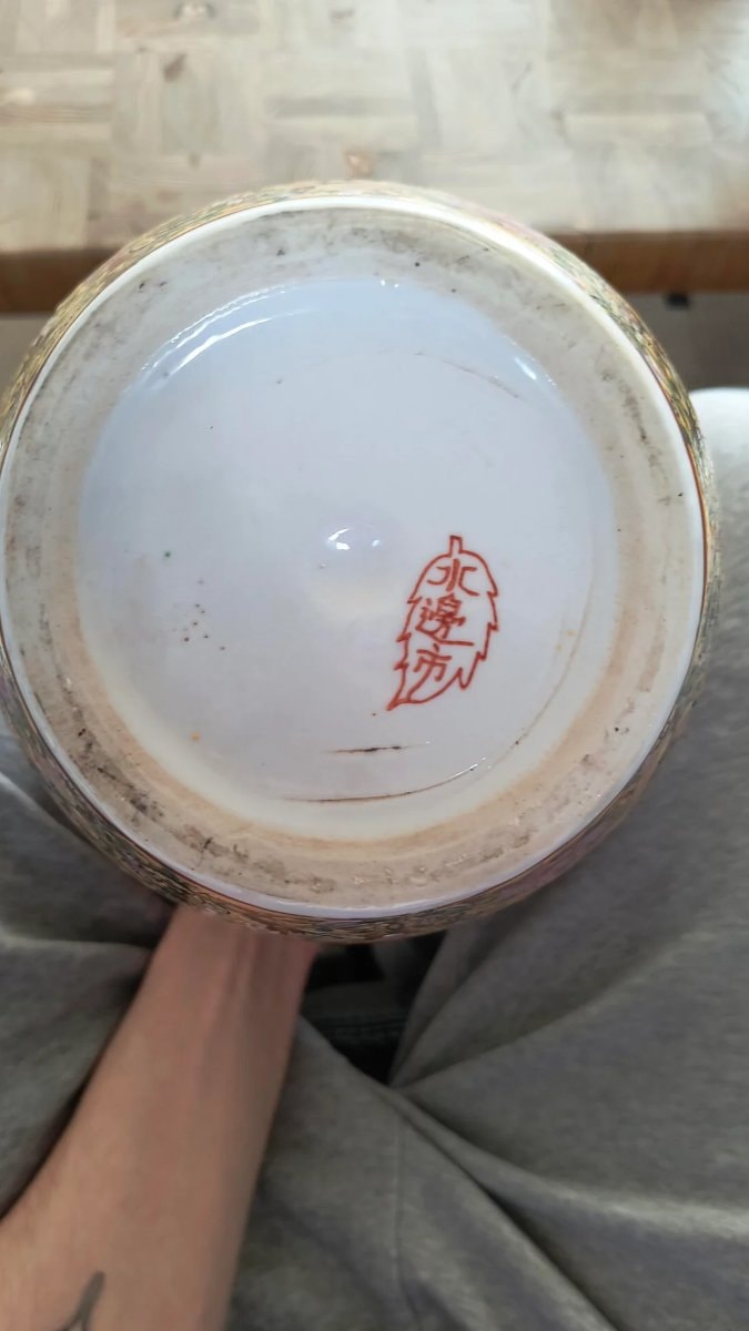 ▼ Missing original domed lid reduces the item's classification from a ginger jar to a vase, heavily discounting collector value