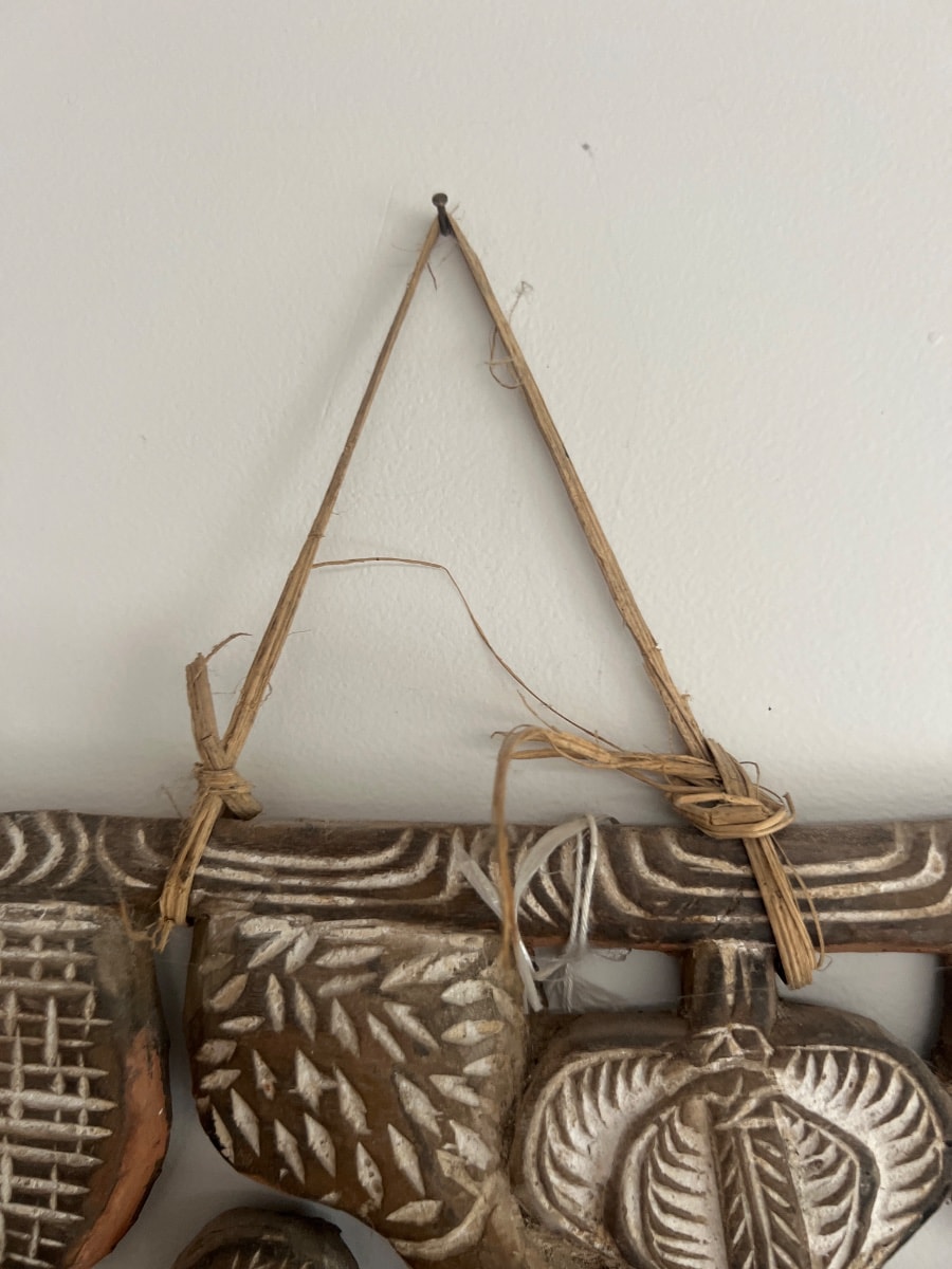 Three Kambot brothers—Ignas, Paulas, and Zacharias Waybenang—are widely credited with pioneering the technique, initially carving bas-relief scenes onto banyan tree roots and sawmill offcuts. These intricate wooden panels preserve the complex myths and daily rhythms of the Sepik people, heavily featuring stilt houses, crocodile hunting, and local flora. The carvings were often finished with natural wax and detailed using white lime and earthen ochers. Today, storyboards are globally recognized as a vibrant, albeit commercially driven, continuation of traditional Oceanic artistic practices.[1]
