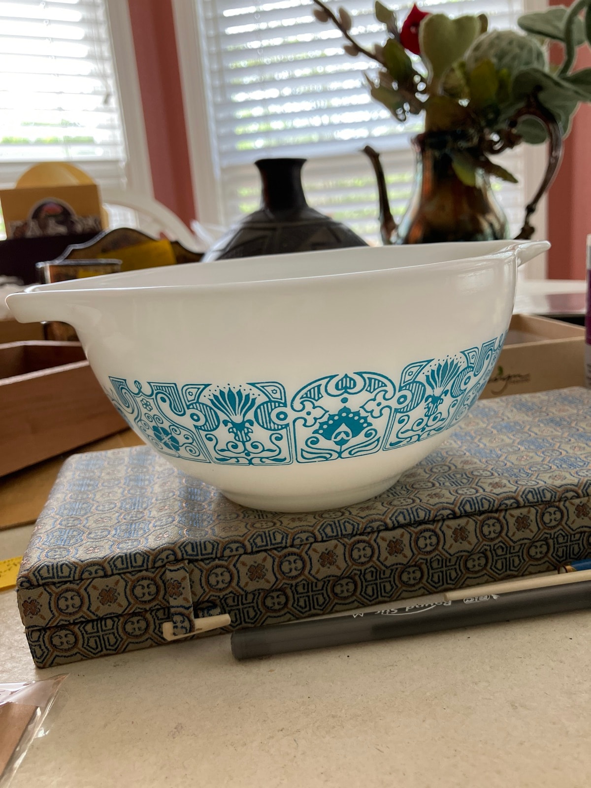 Released in 1969, this pattern was created to commemorate the historic Apollo 11 moon landing. Advertisements at the time famously depicted these bowls sitting on the lunar surface with Earth in the distance, celebrating a new 'space age' aesthetic for the American kitchen.