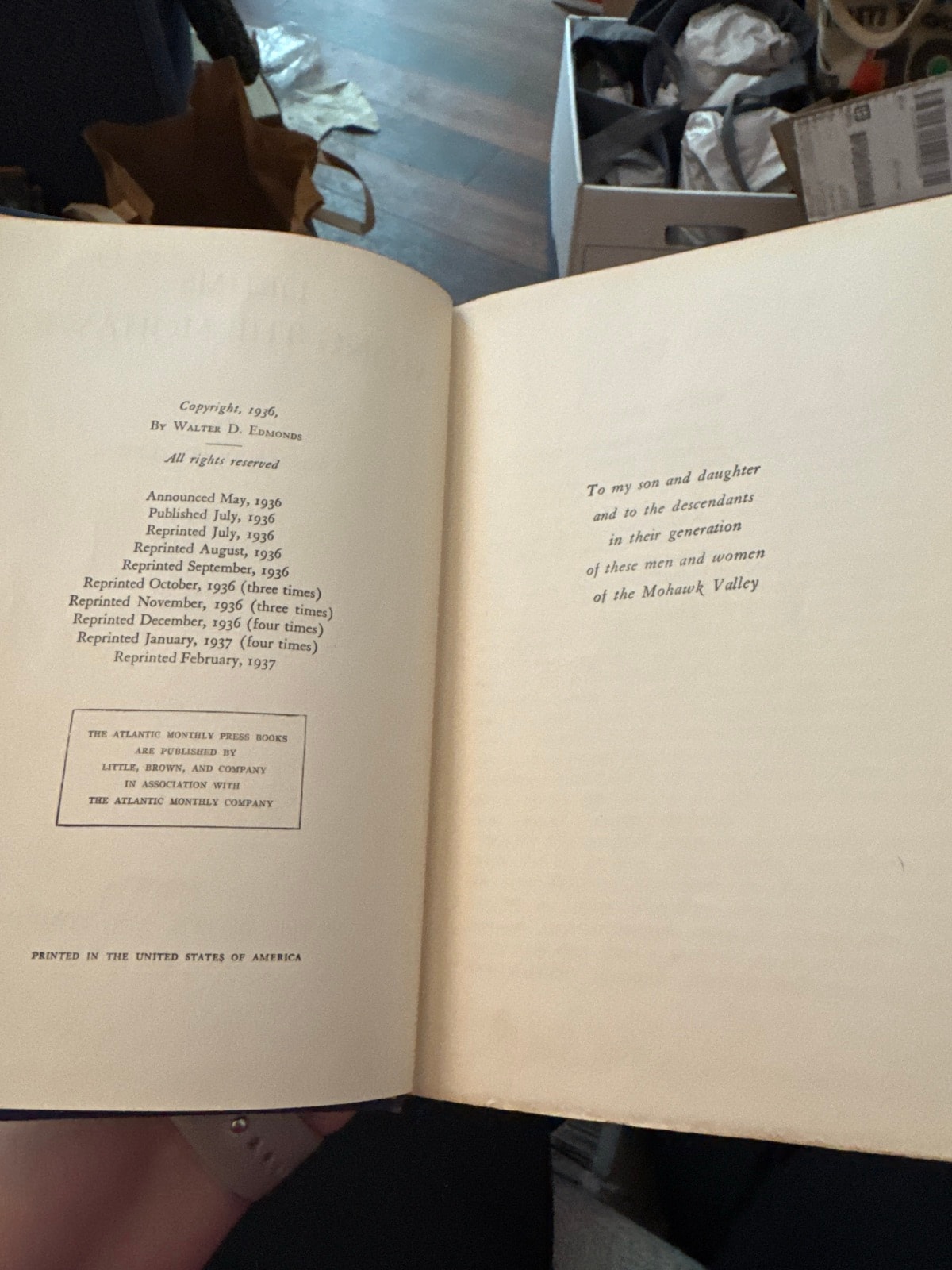 A classic of American historical fiction, this novel depicts the struggles of frontier settlers in the Mohawk Valley during the American Revolution. This specific copy is a very early printing, evidenced by the extensive list of reprintings within its first year of publication.