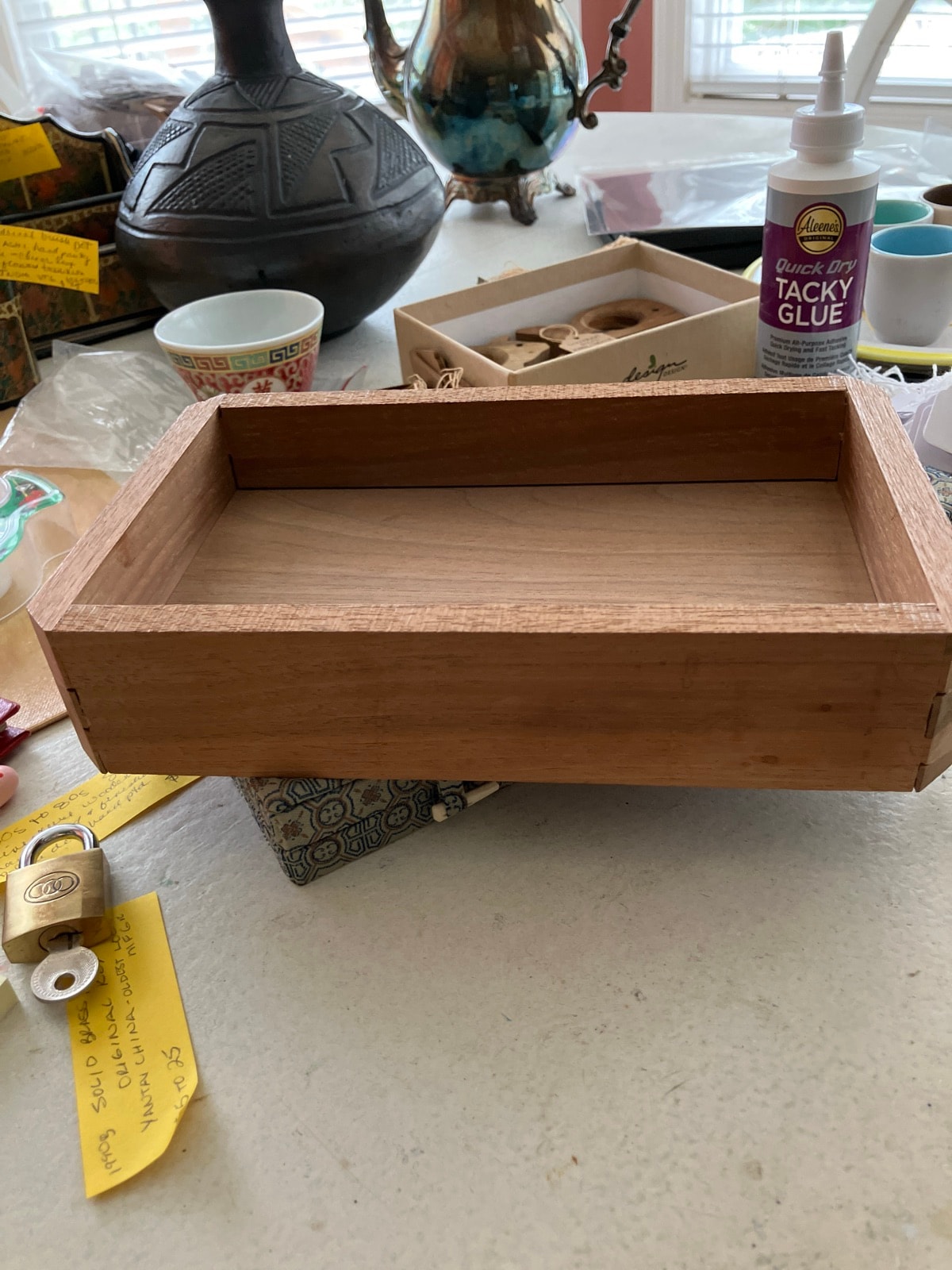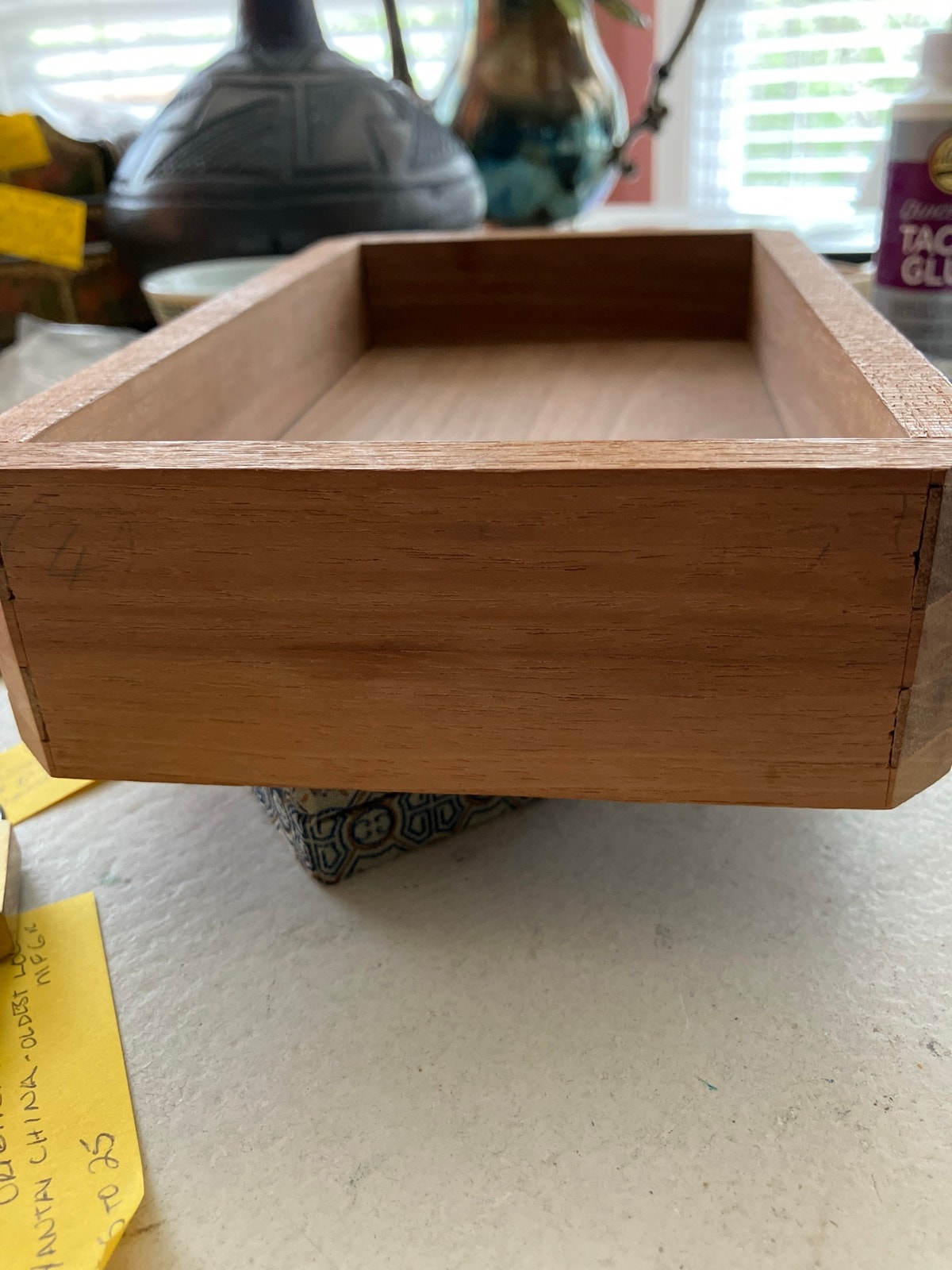 A masterfully joined shallow tray made from Paulownia wood, known in Japan as 'Kiri.' This piece features traditional 'sashimono' joinery, where the corners are mitered and reinforced with hidden or visible splines to create a seamless, nail-free bond.