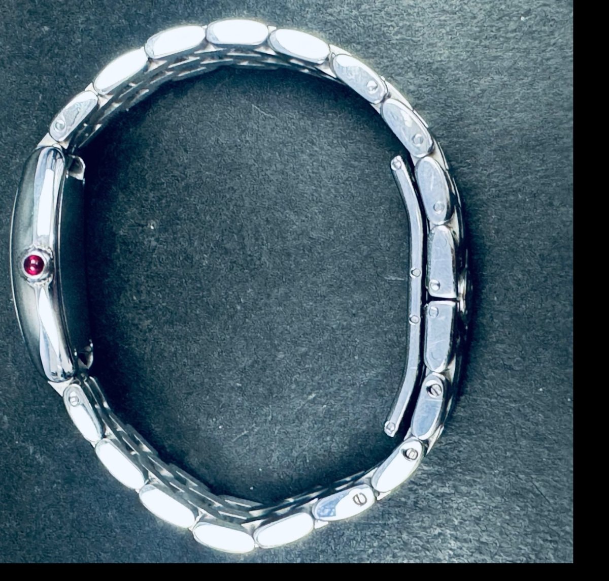 The case and bracelet show light surface scratches consistent with careful wear, but no deep gouges are visible. The red cabochon on the crown appears intact, and the dial shows no signs of moisture damage or fading. Excellent condition commands a premium, but a full mechanical service is recommended for watches of this age.