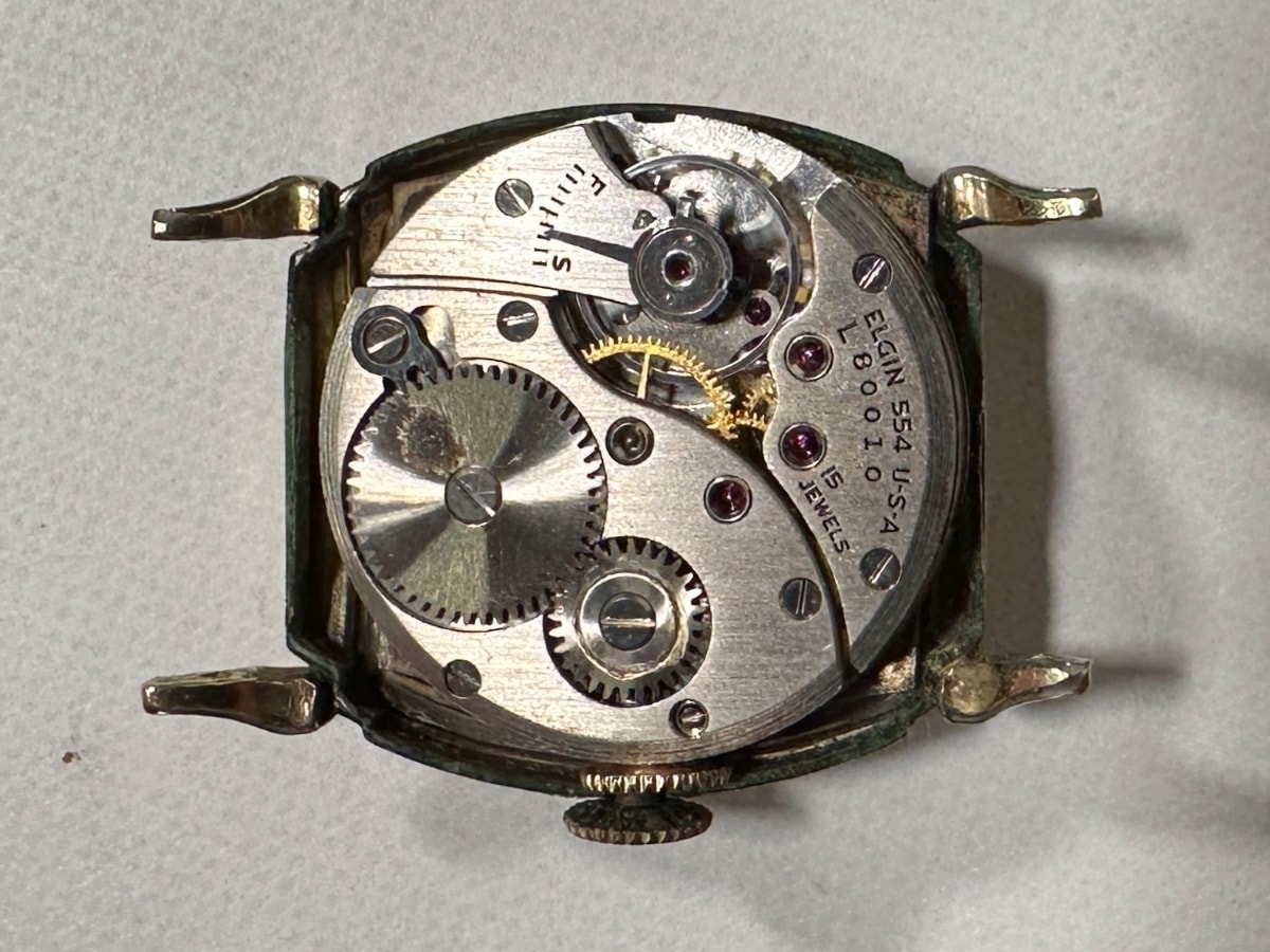 Produced in 1944, this watch was born at the height of WWII. While Elgin was busy making 'hack' watches for soldiers in the Pacific, they also crafted these elegant civilian models. The 'L' serial prefix on the movement marks it as a true wartime survivor.