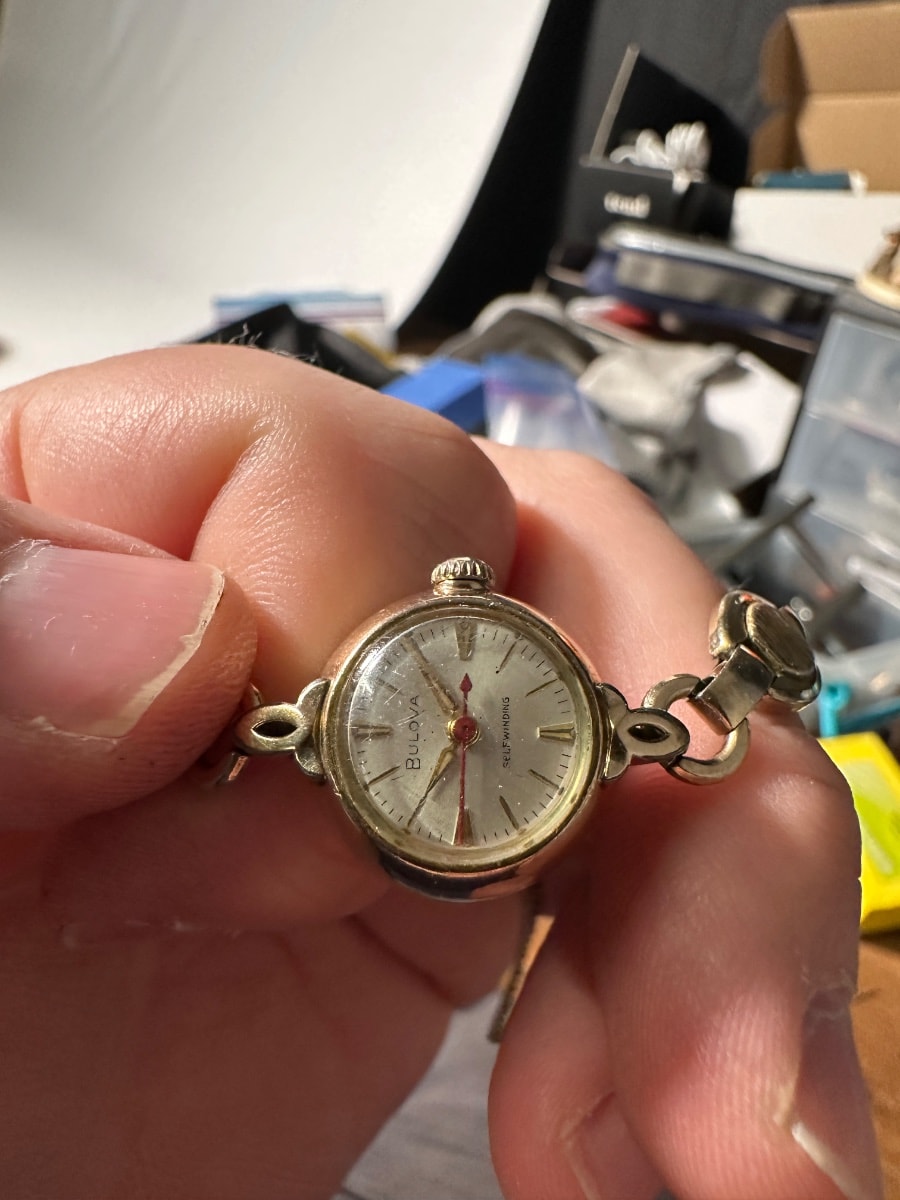 A sophisticated mid-century ladies' timepiece featuring a 10k Rolled Gold Plate case and a rare automatic movement for its diminutive size.