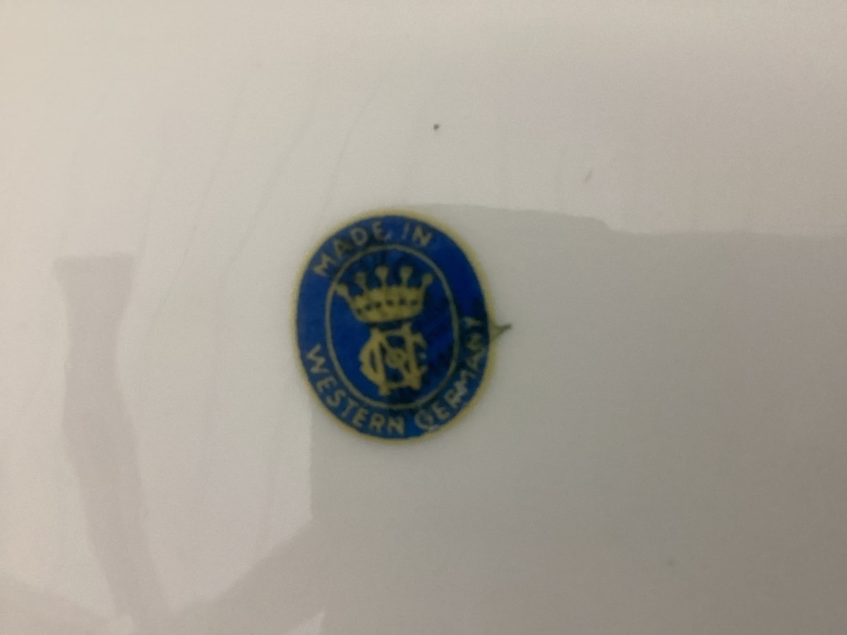 The 'Western Germany' label dates these to a divided Europe, where West German factories like Kaiser became global symbols of democratic craftsmanship. These were the 'Sunday best' plates for a generation that valued formal hospitality.